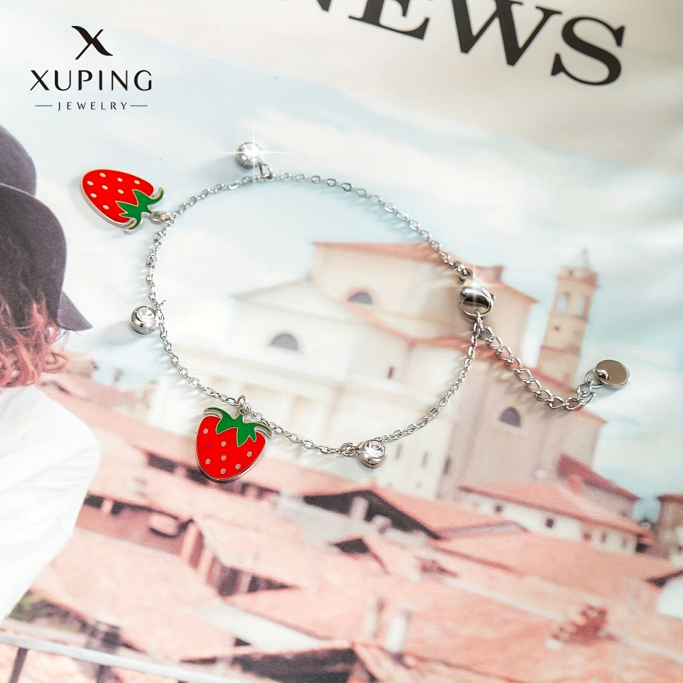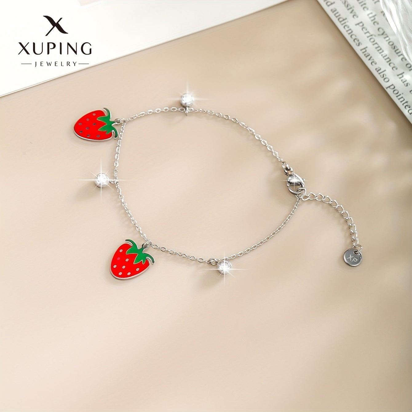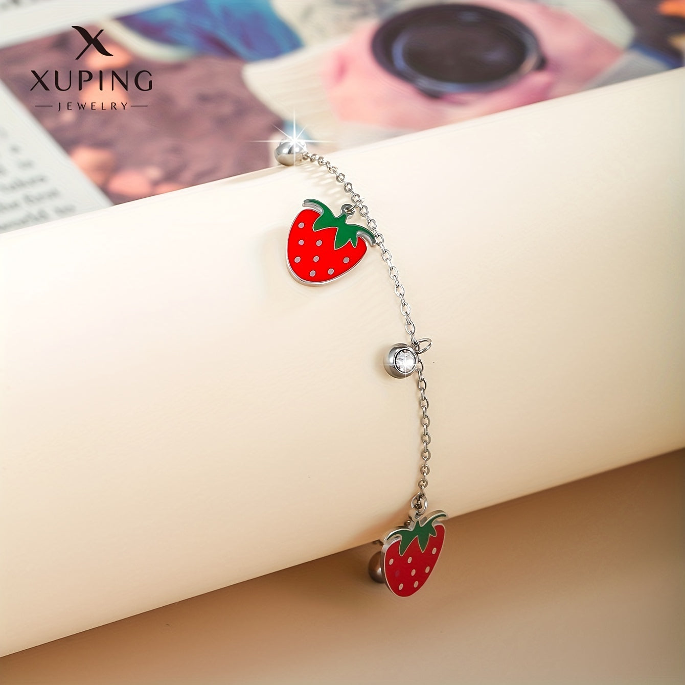 Add a touch of summer to your look with this delightful stainless steel bracelet featuring strawberry charm. Perfect gift for women and girls.