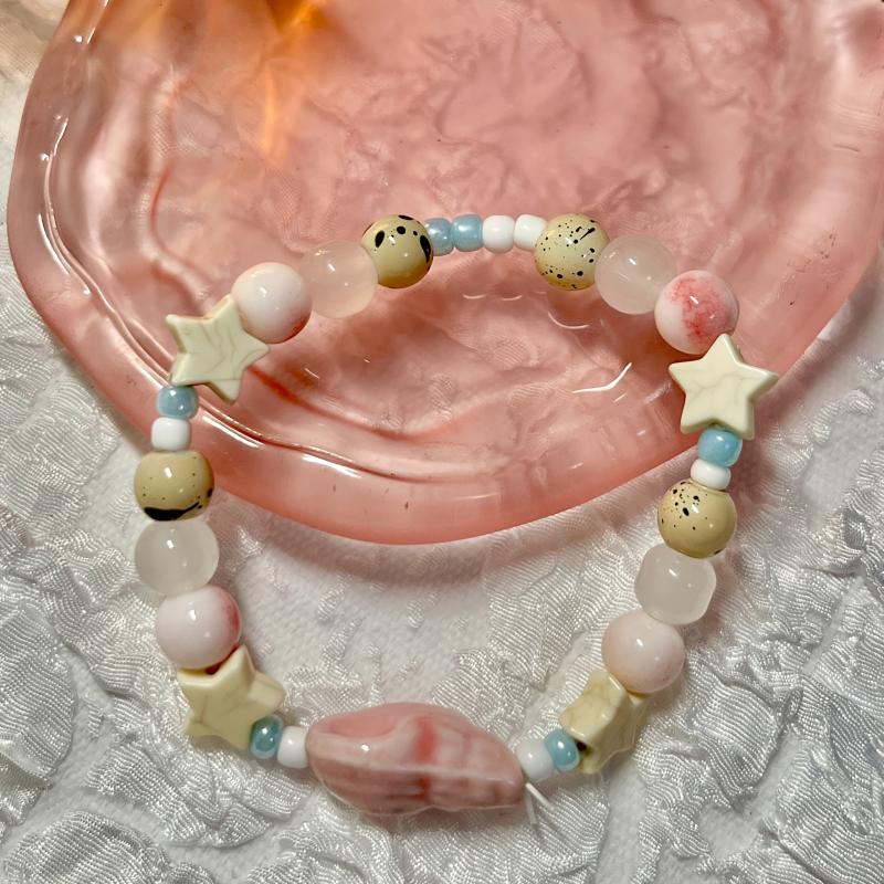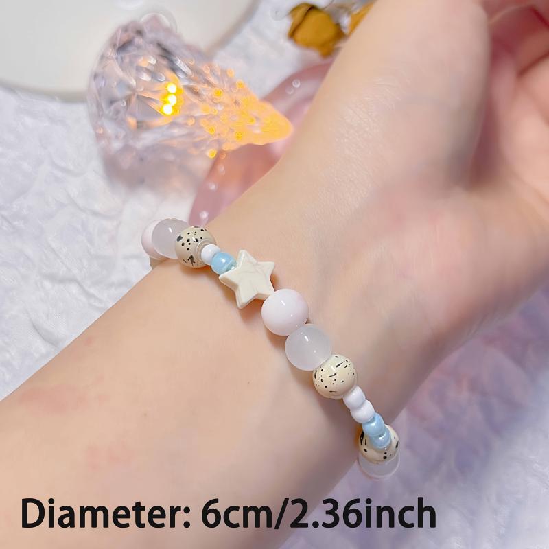 Add a touch of celestial charm to your outfit with this Starry Night Ceramic Bracelet featuring pearl and star charms. Ideal for daily wear, this accessory is perfect for adding a touch of sparkle to your ensemble.