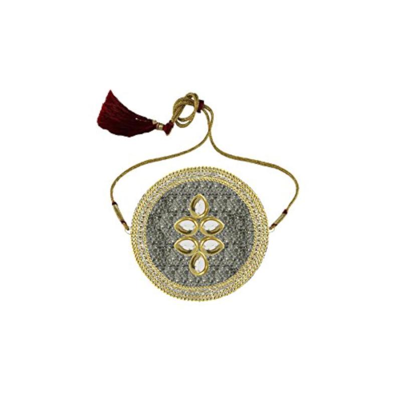 Elegant brass armlet featuring stone stud design, size adjustable, perfect for traditional occasions.
