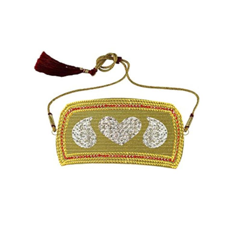 Elegant brass bajubandh featuring stone studs. Freesize and adjustable for comfort.