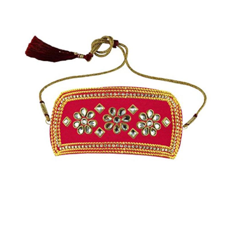 Beautiful brass bajubandh with stone studs. Free size for a perfect fit.