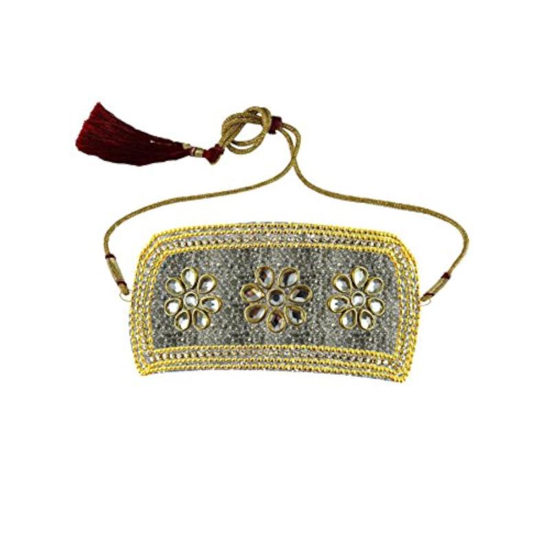 Elegant brass bajubandh featuring stone stud design, suitable for all sizes.