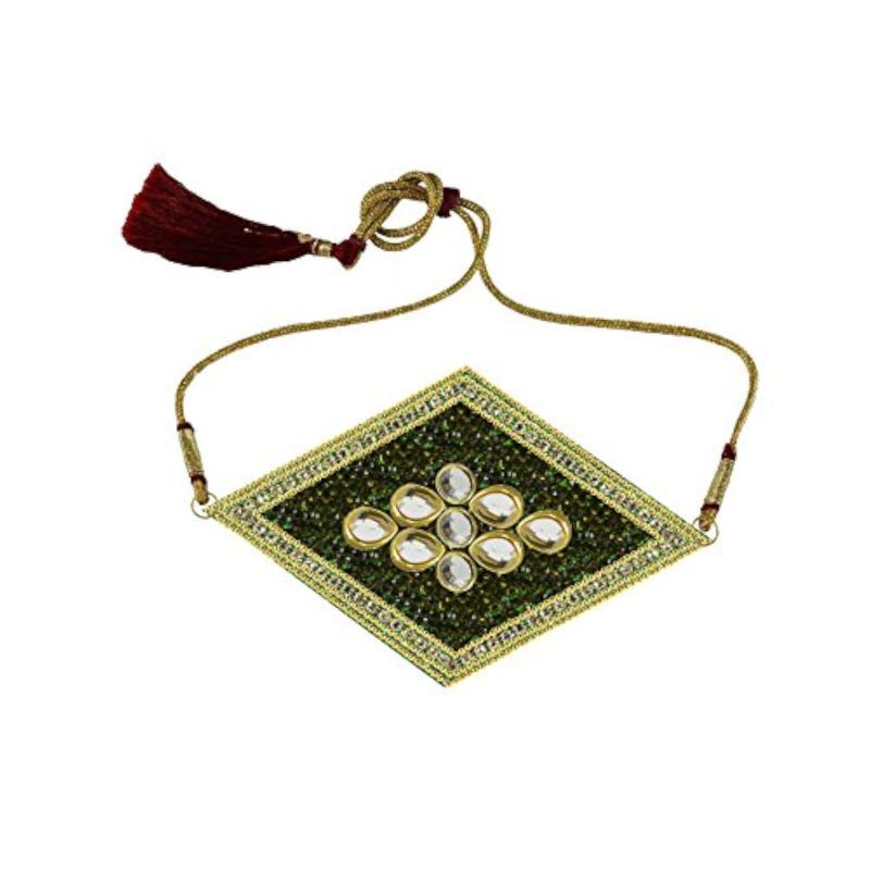 Elegant stone stud brass bajubandh with adjustable free size. Perfect for adding a touch of glamour to your ethnic look.