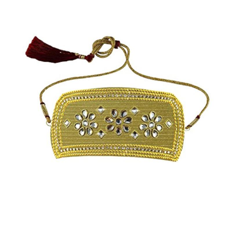 This beautiful bajubandh is made of brass with stone studs. Perfect for pairing with traditional attire.