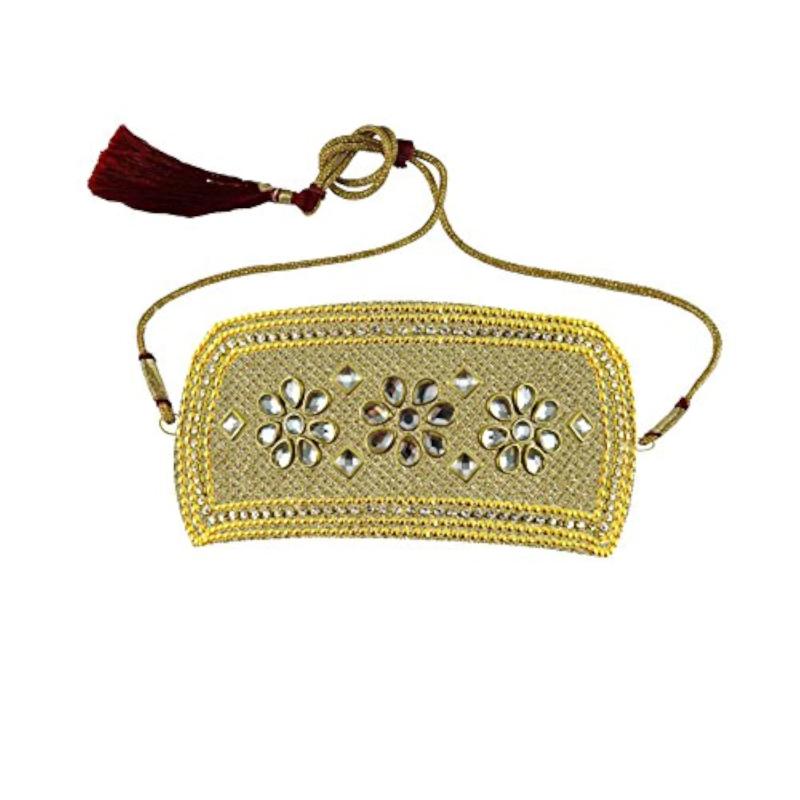 Elegant brass bajubandh featuring stone stud accents. Free size for a comfortable fit.