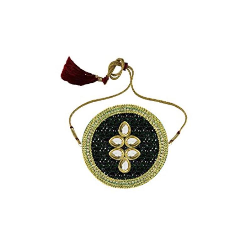 Add a touch of elegance to your outfit with this brass bajubandh featuring stone studs.