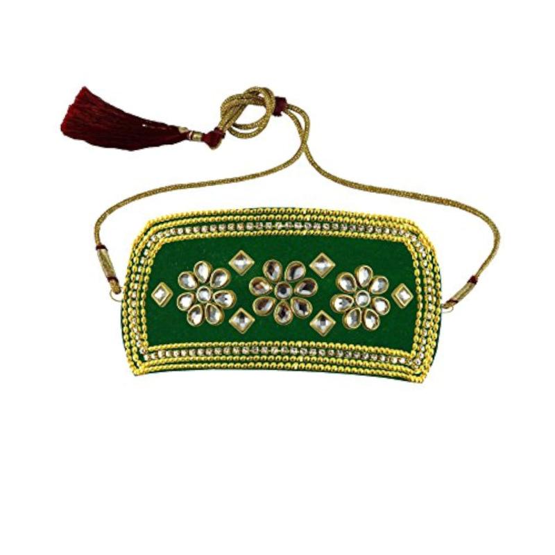 Enhance your ethnic look with this beautiful armlet made of brass with stone studs in a leaf design. It is adjustable to fit any arm size.