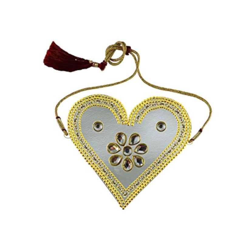 Elegant brass bajubandh with stone studs, suitable for free size.