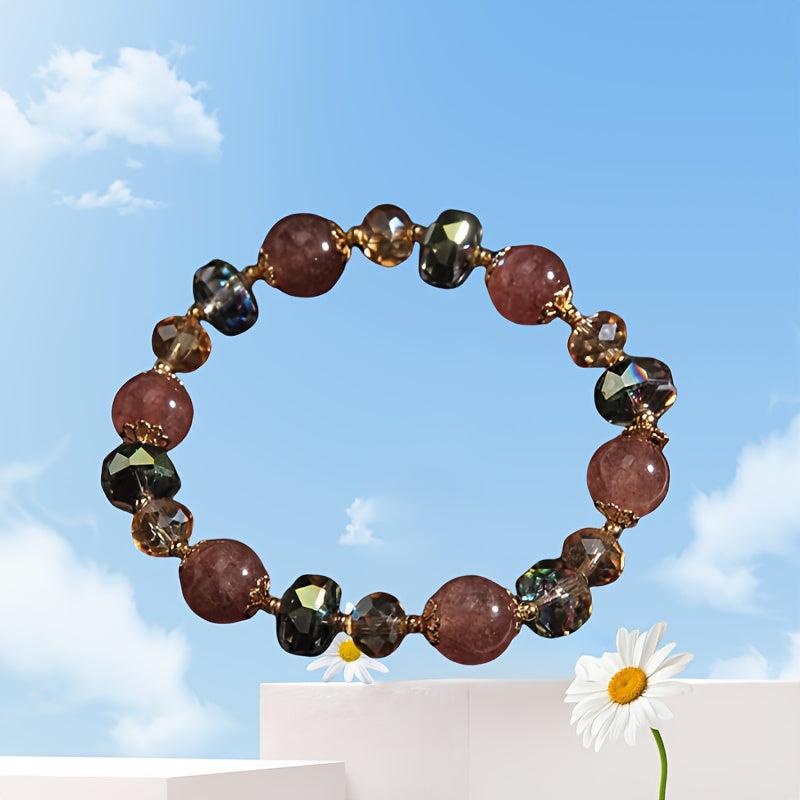Elevate your look with this stunning strawberry crystal bracelet that adds a touch of elegance and charm to any outfit.