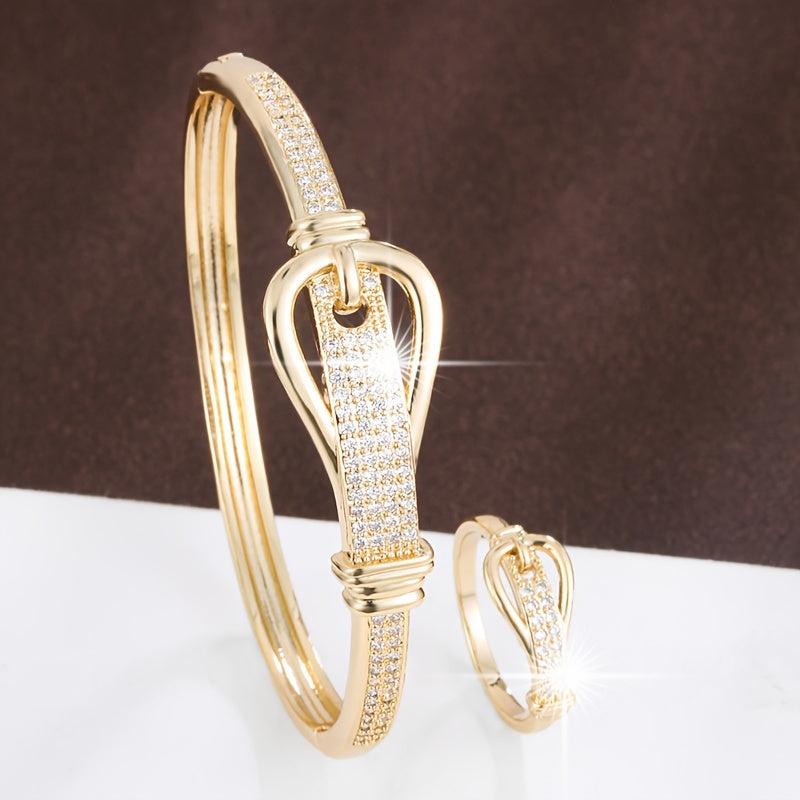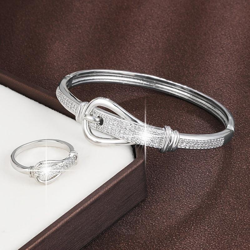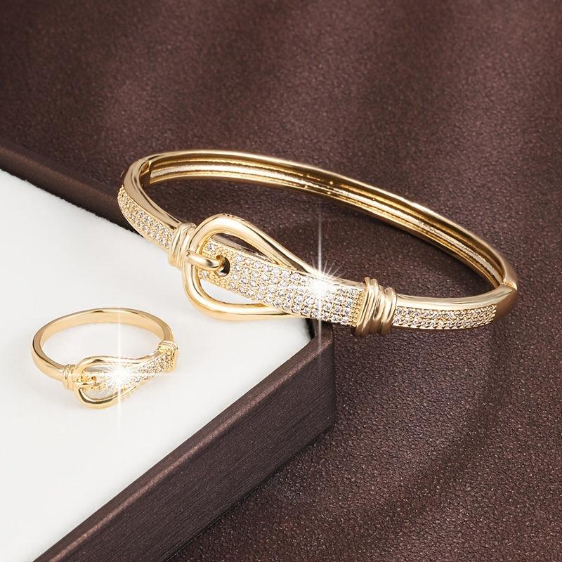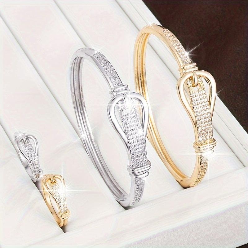 Elevate your style with this chic set featuring a synthetic zirconia encrusted buckle design. Made of high-quality copper for durability and elegance.