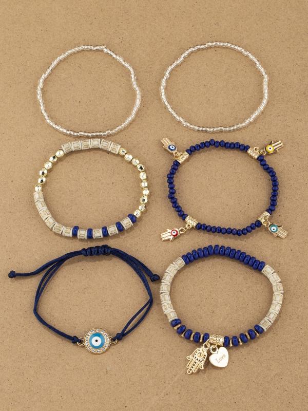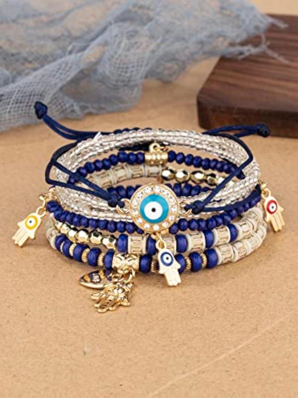 Add a touch of style and protection to your outfit with this chic Evil Eye multilayer bangle bracelet. The navy blue color adds a pop of color to any look.