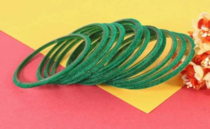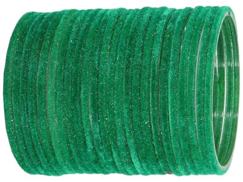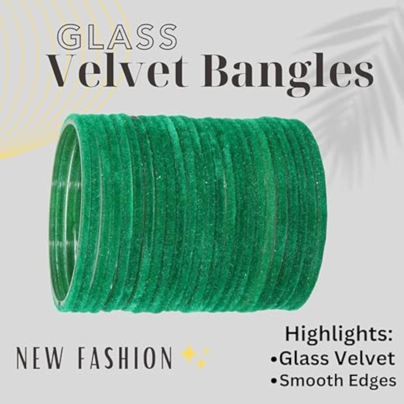 Add a touch of elegance to your look with this set of 24 stylish glass velvet bangles. These plain chudi kaanch ki bangles are perfect for any occasion and add a pop of color to your outfit.