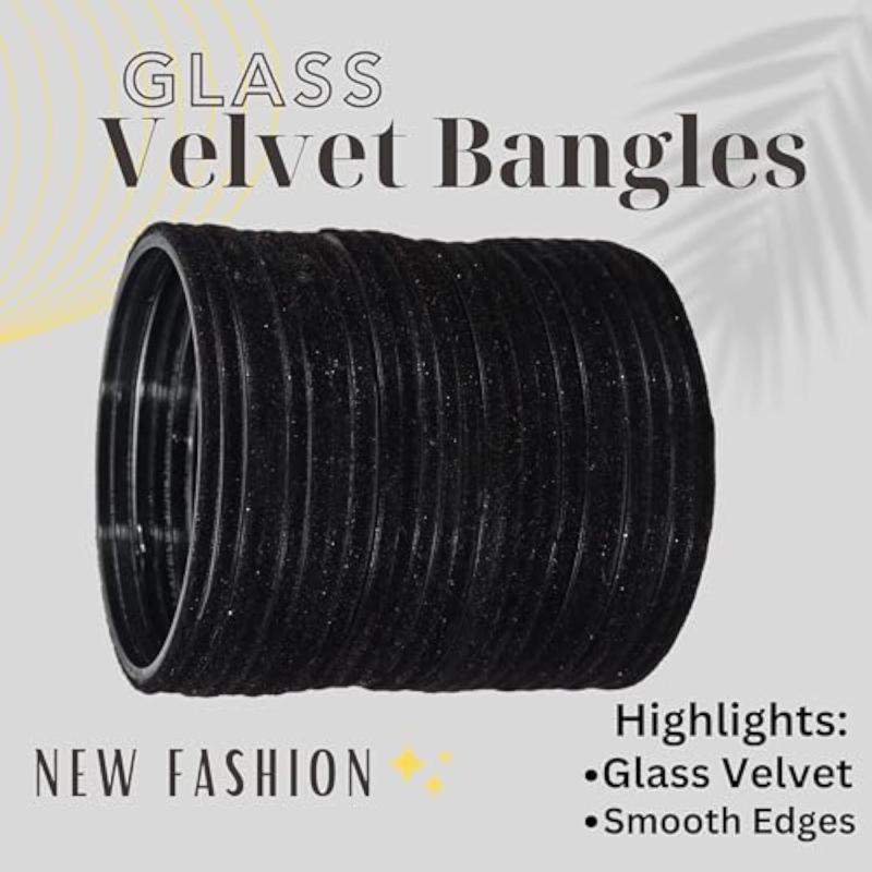 Elevate your style with this set of 24 stylish glass velvet bangles. These bangles are perfect for adding a touch of elegance to any outfit.