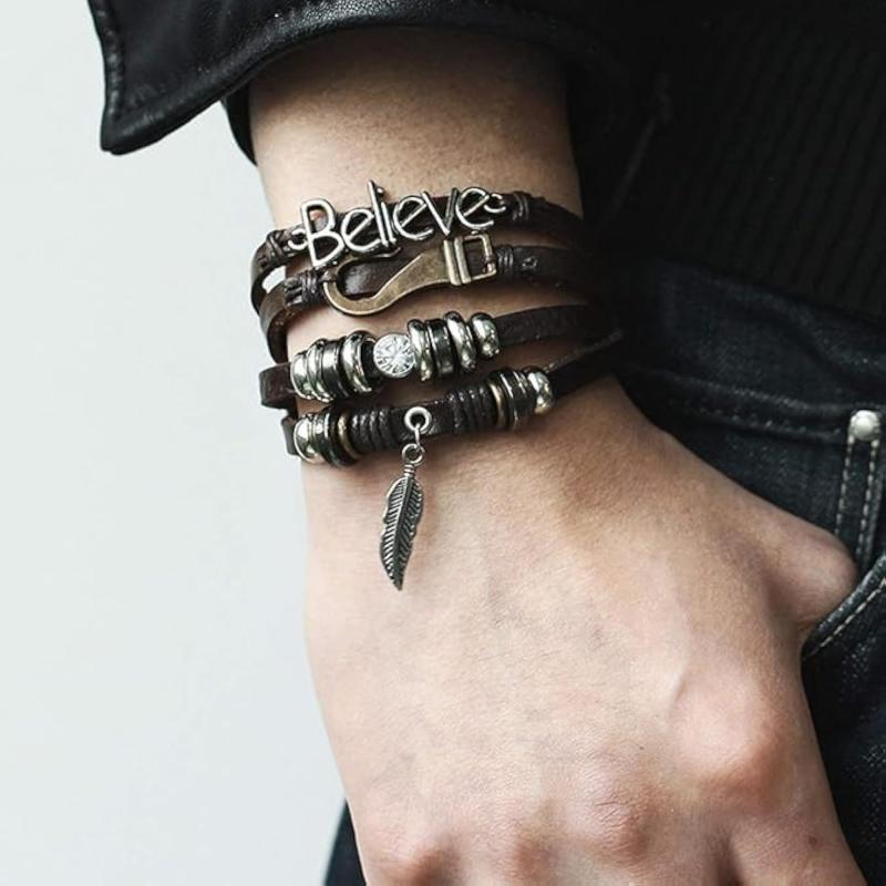This stylish combo includes a leather bracelet with a magnetic clasp and an evil eye design. Made of high-quality silver stainless steel, perfect for birthdays and anniversaries.