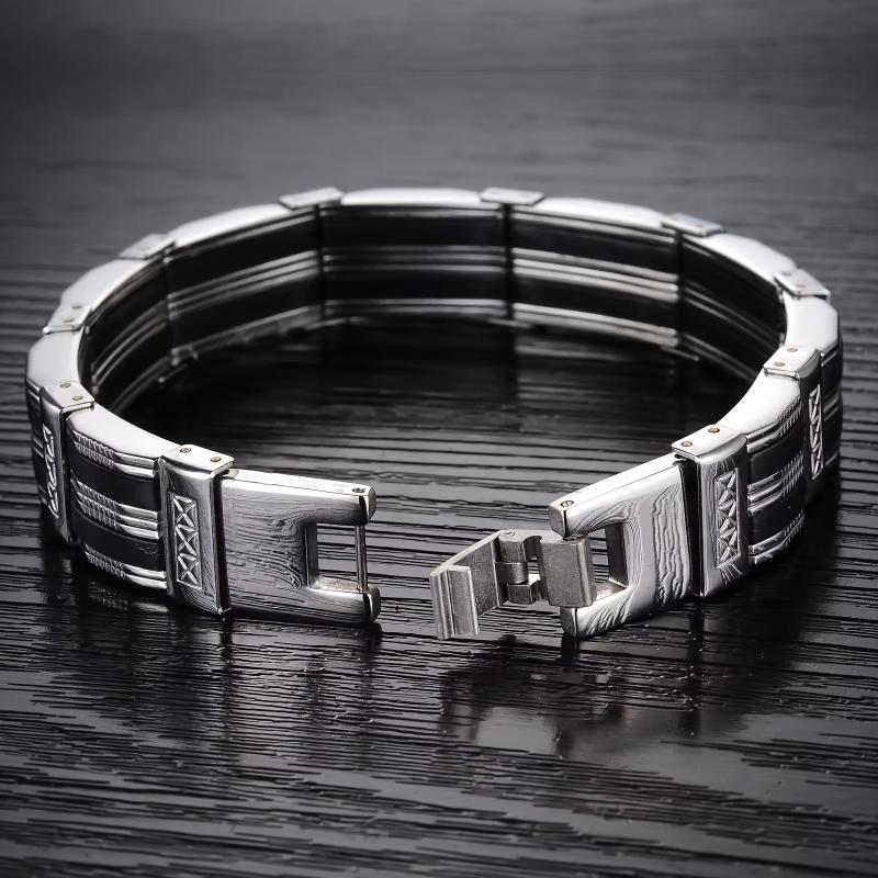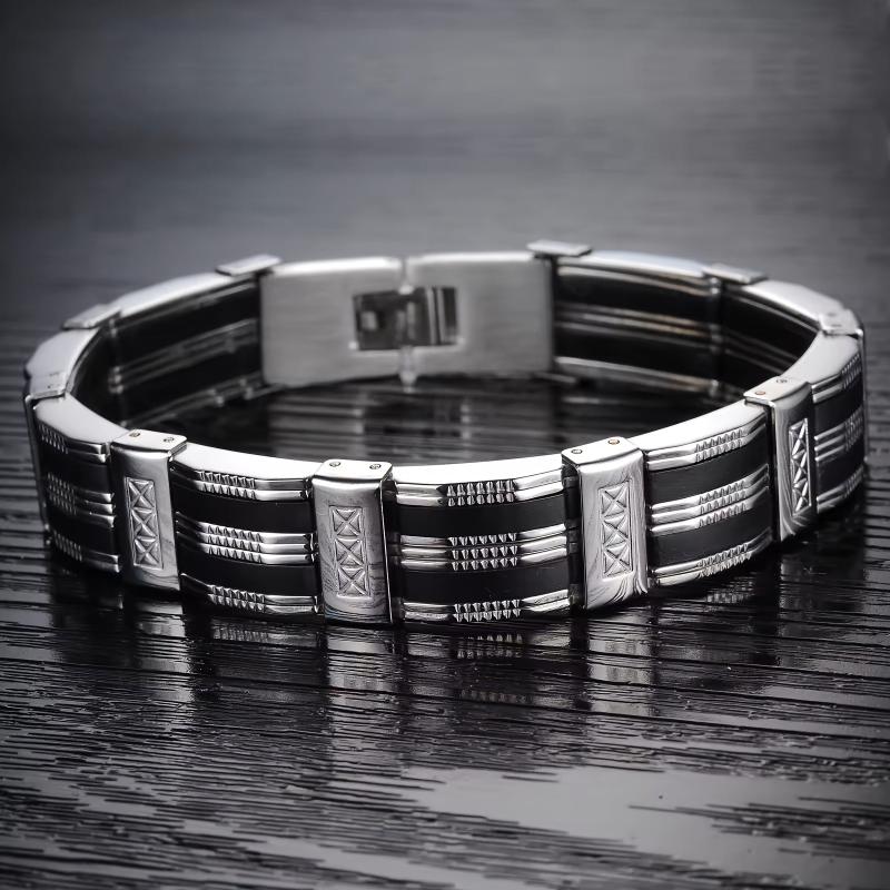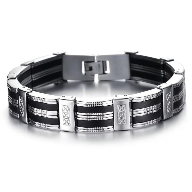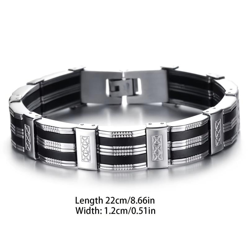 This large men's bracelet combines silicone and 304 stainless steel for a modern and stylish look.