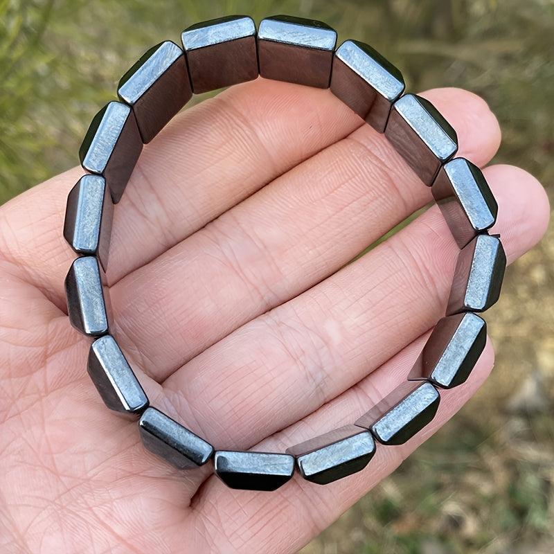 This unique pendant is designed for both men and women, featuring a natural stone square in silvery gray. Make a fashionable statement with this elegant accessory.