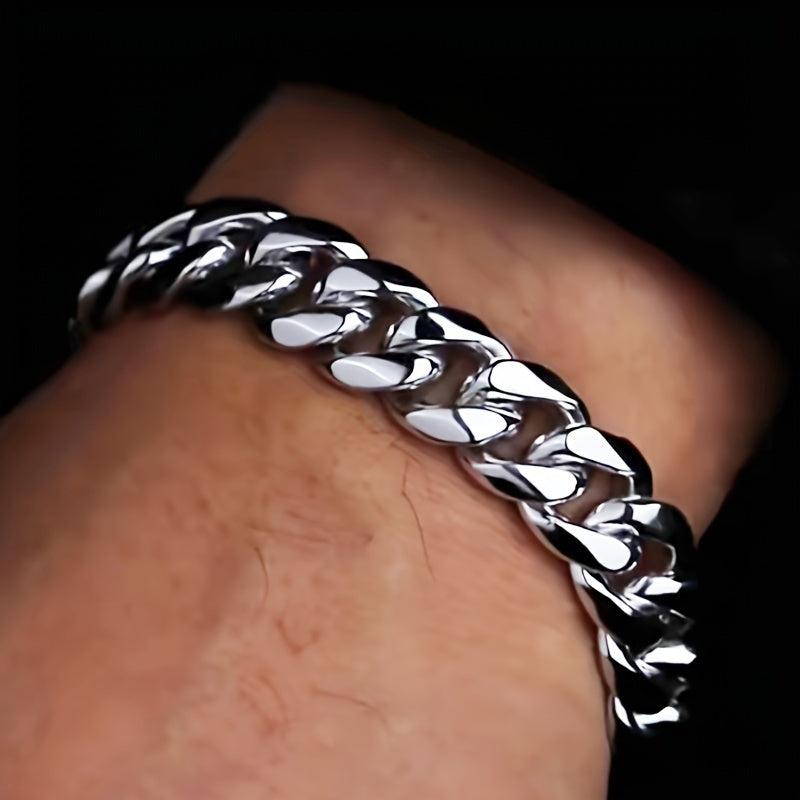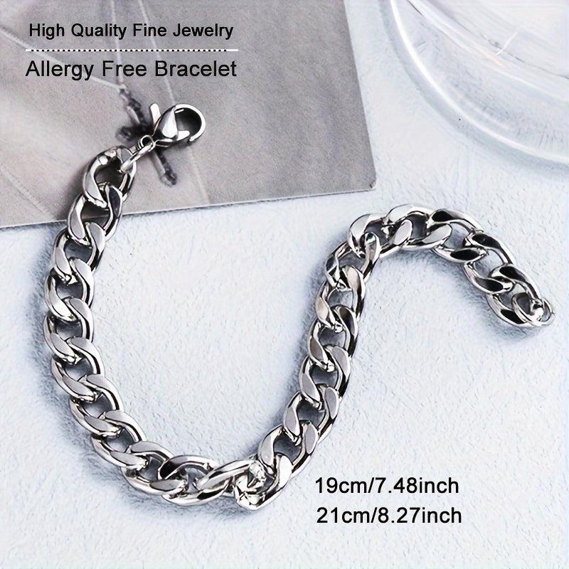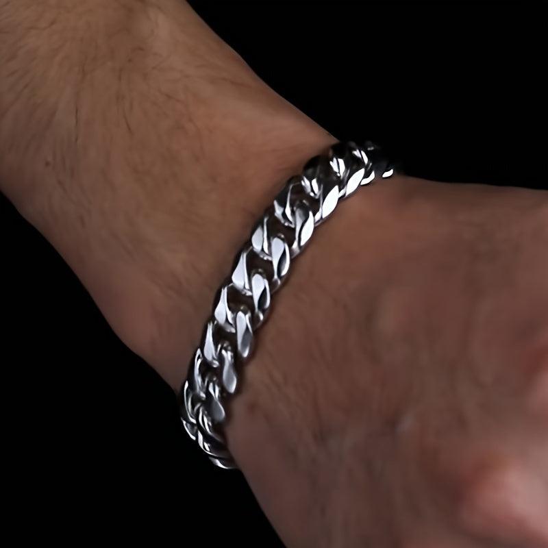 This durable bracelet is made of titanium steel, features a lobster clasp, is washable, and fade-resistant.