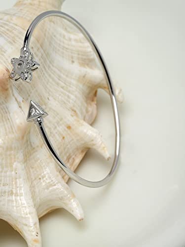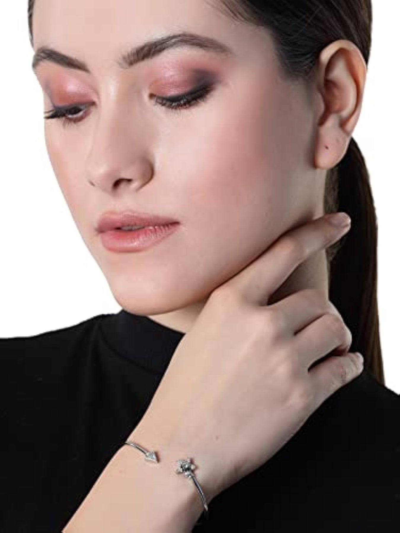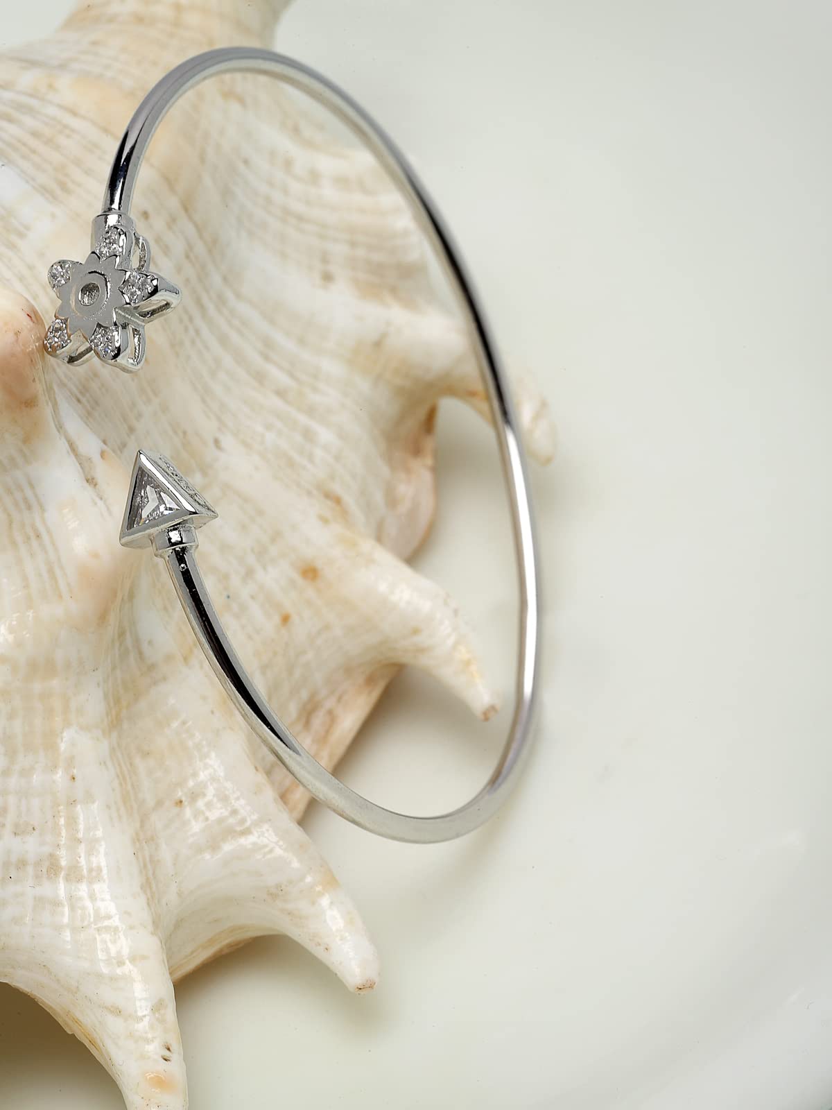 Elegant floral-shaped bangle bracelet crafted from 925 sterling silver with cubic zirconia stones. Comes with a certificate of authenticity.