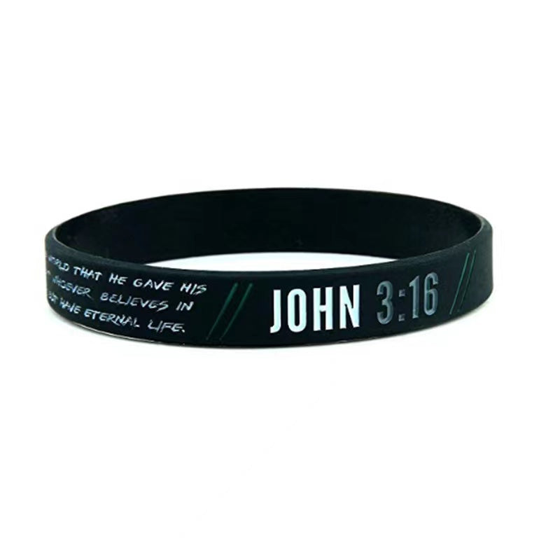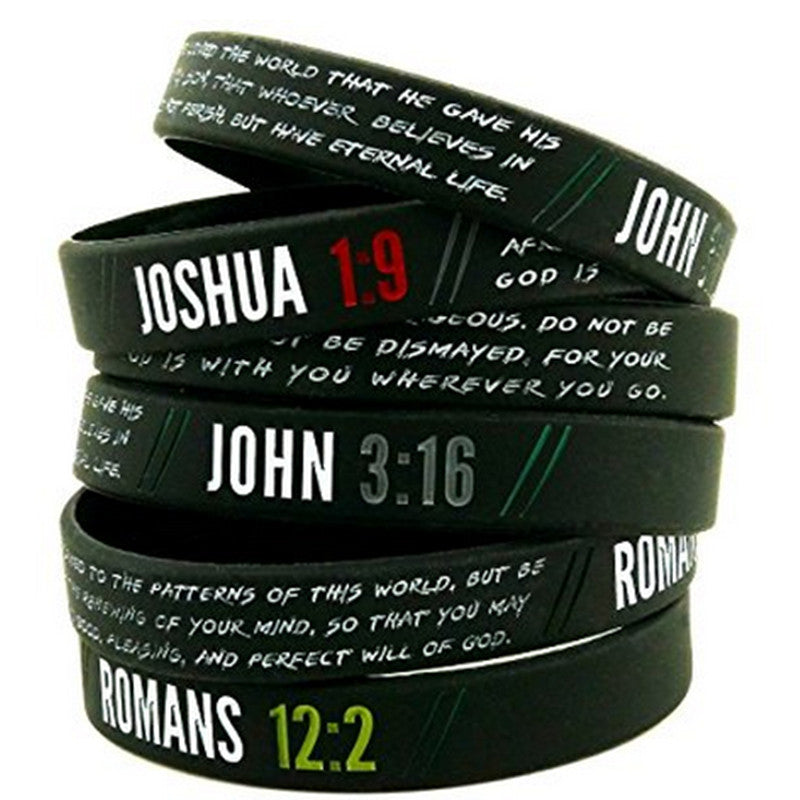 The Lord's Bible Silicone Bracelet Wristband John 3:16 Romans 12:2 Joshua 1:9