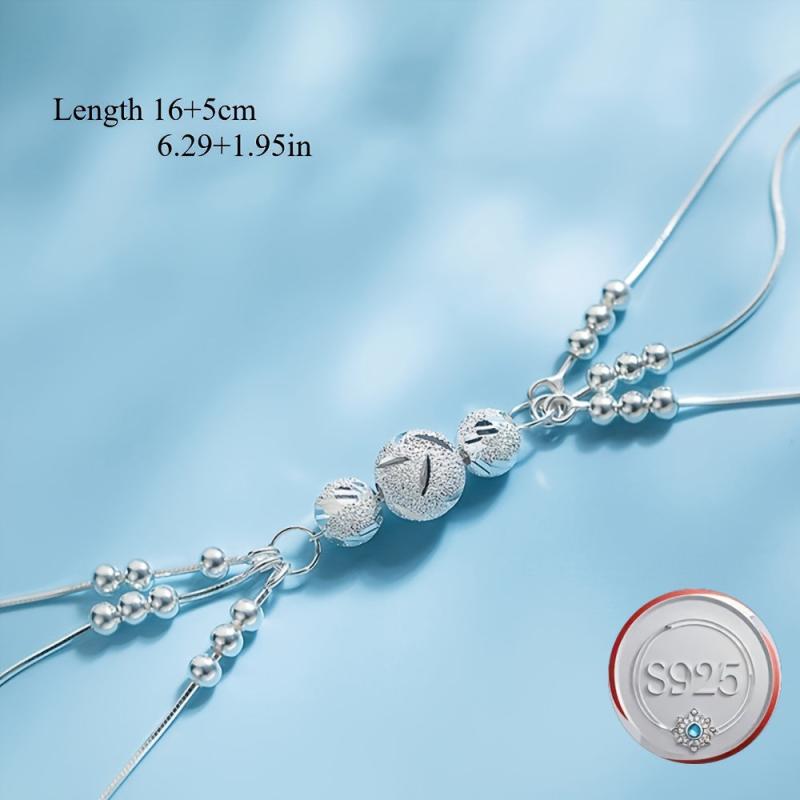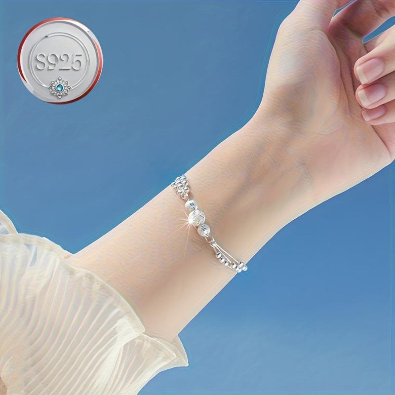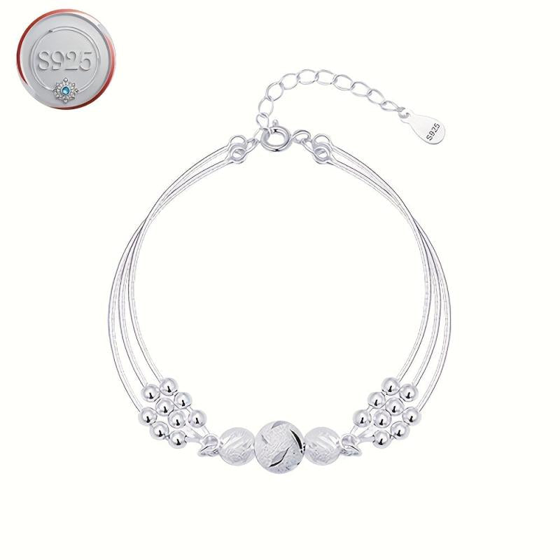 Stylish and versatile S925 bracelet featuring a three-layer hollow out design with carved round beads. Perfect for female students looking for a minimalist accessory.