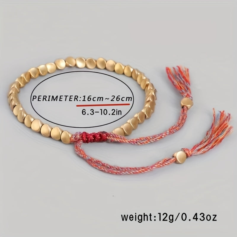This Tibetan Buddhist bangle bracelet features a hand braided design with copper beads. It's a lucky rope bracelet suitable for both men and women, making it a great gift idea.