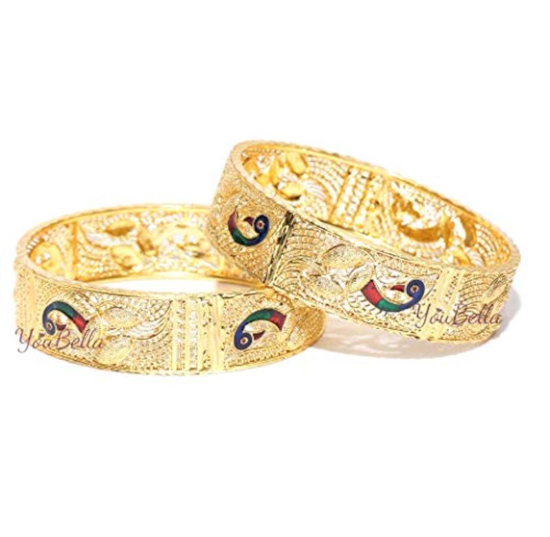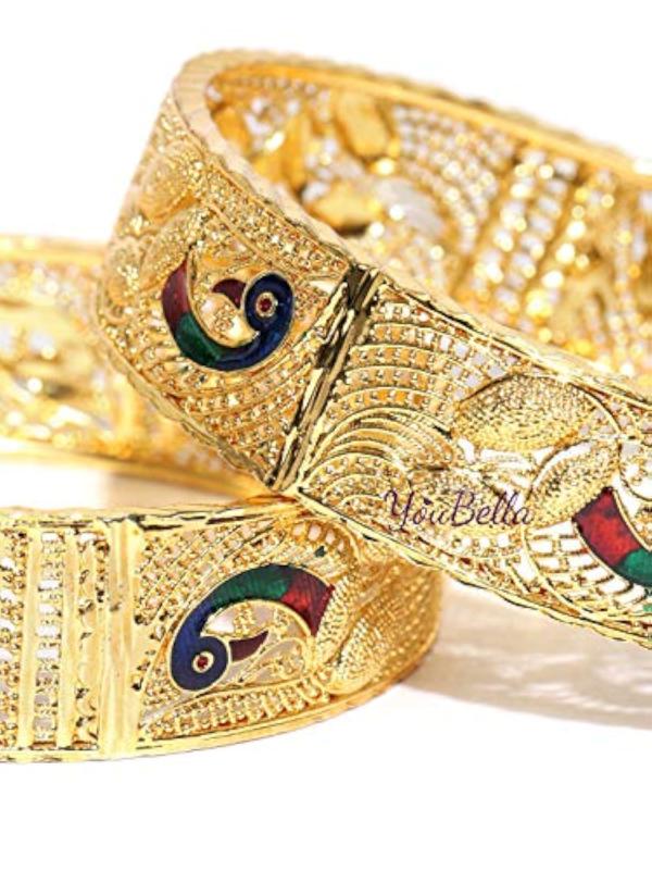 Elegant traditional bangles plated with a stunning design, perfect for special occasions.