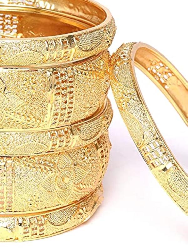 This set includes 6 bangles with a beautiful traditional plated design, perfect for adding an original look to your outfit.