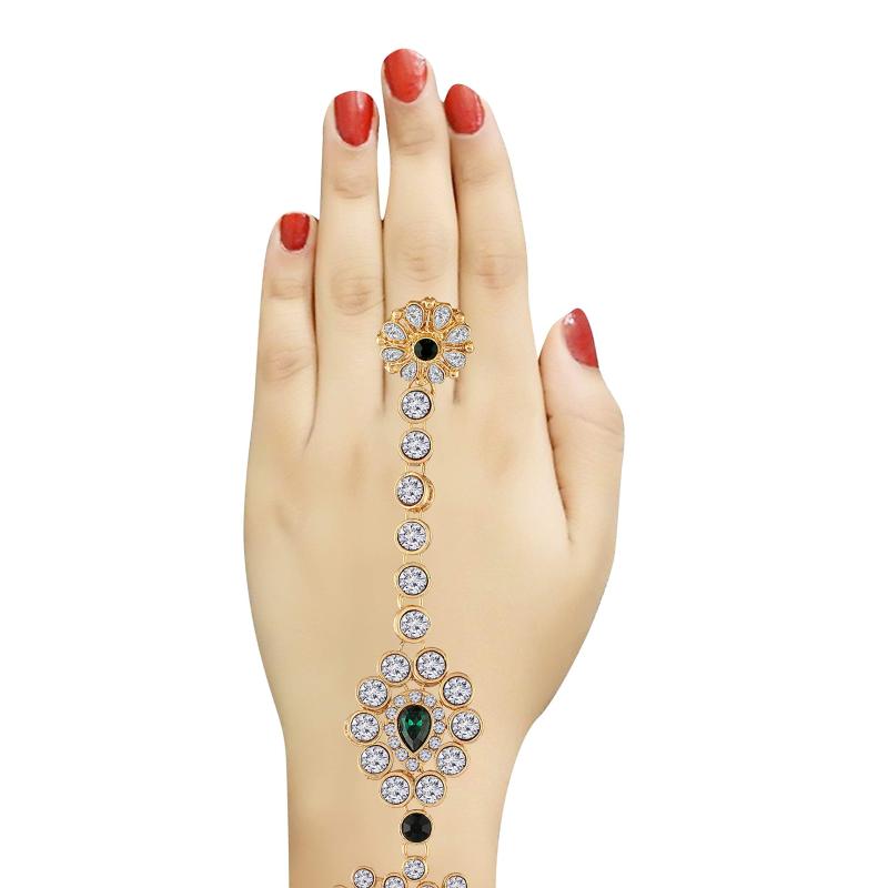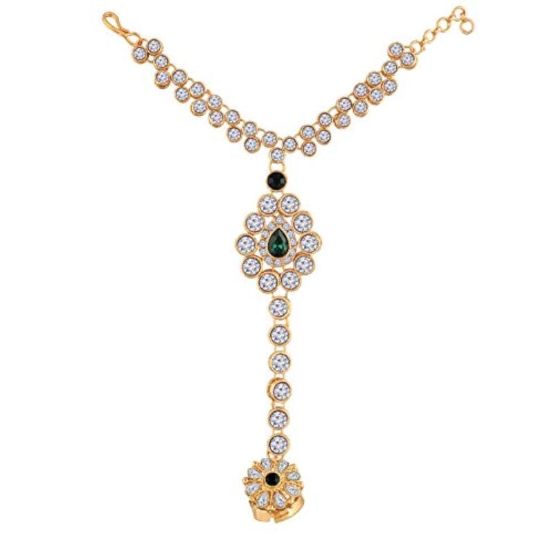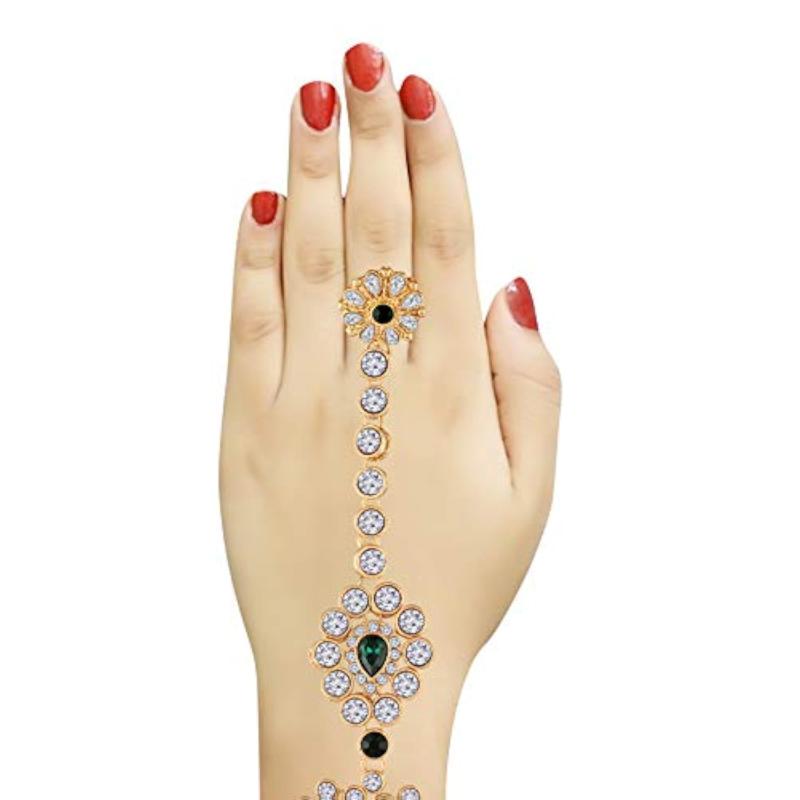 Elegant and traditional plated hand jewelry set with CZ stones. Perfect for special occasions and weddings.