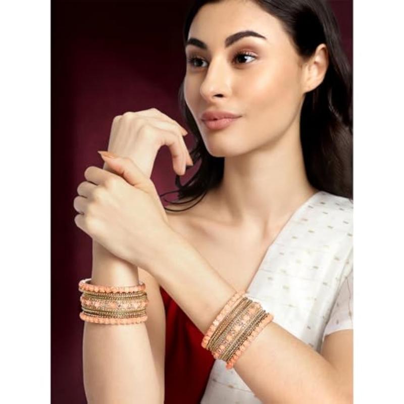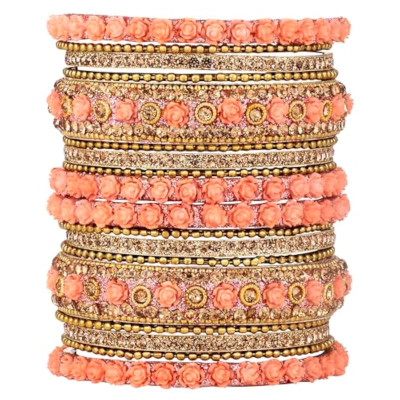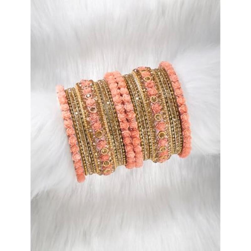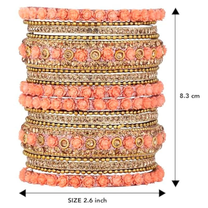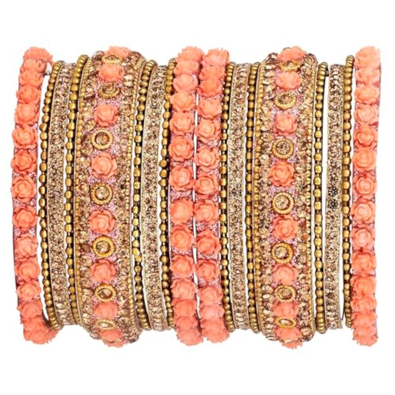 Elegant and traditional Indian wedding chura bangle set with floral rose design, perfect for the bride. Made of high-quality metal in size 2.6.