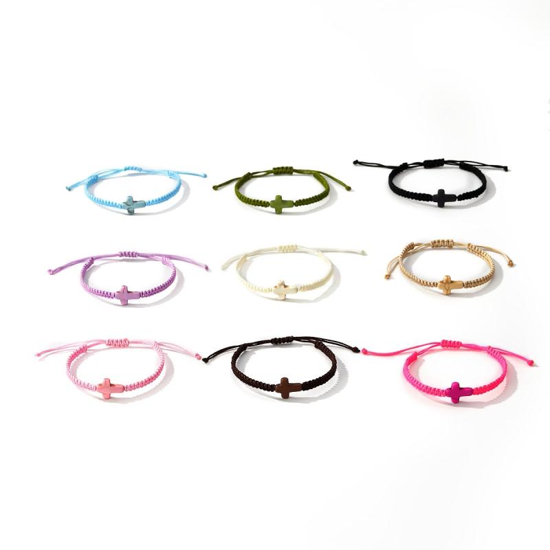Elegant turquoise cross braided hand rope that can be used as a bracelet or beach foot chain. This versatile accessory is suitable for both men and women.