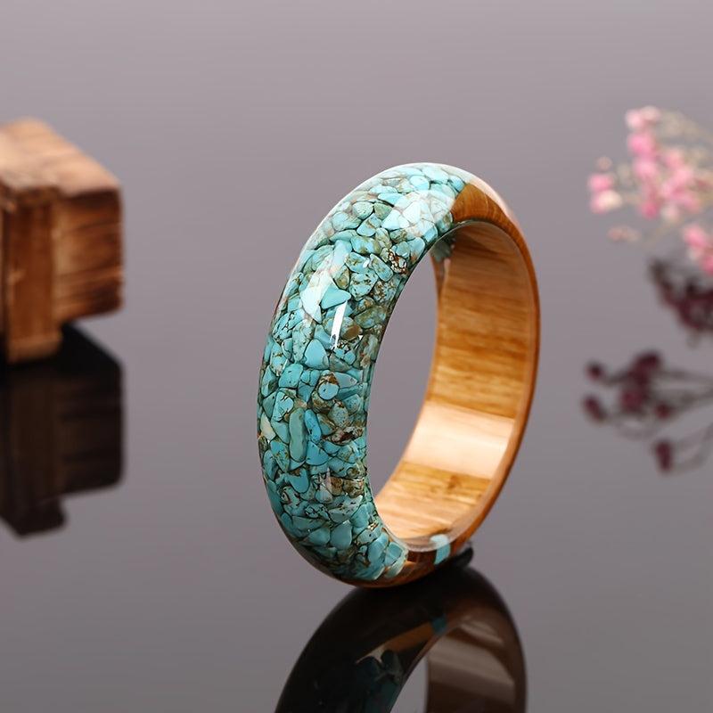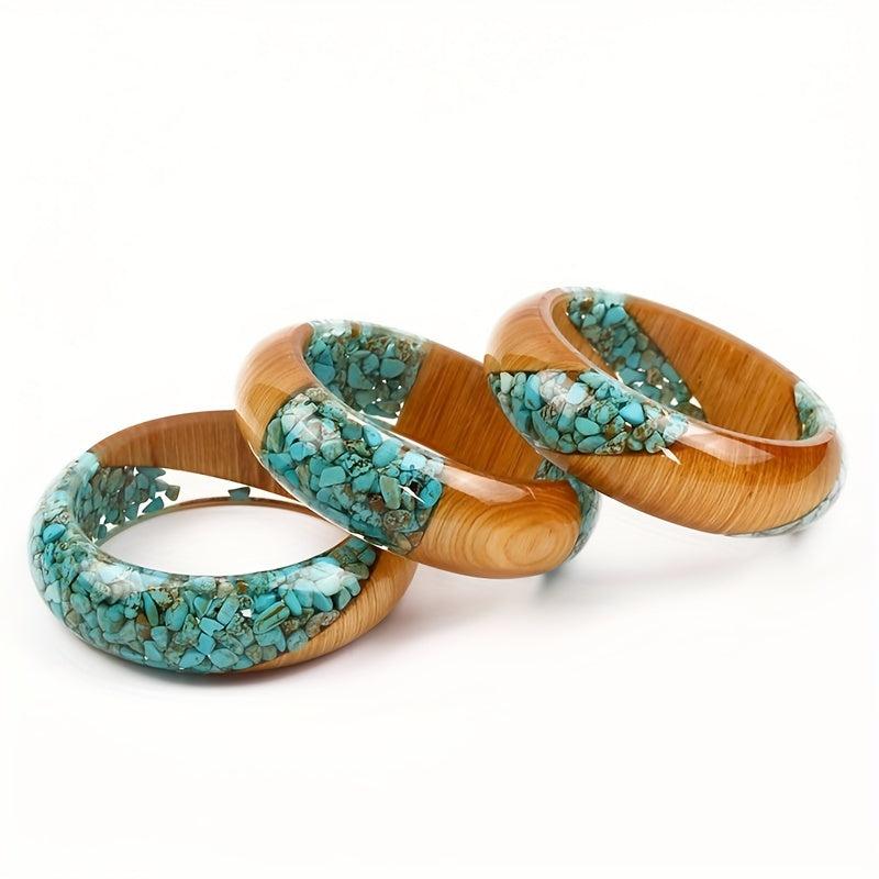 Elevate your casual style with this handmade bangle bracelet featuring a stunning turquoise-inspired resin and wood design. The unique combination of materials creates a versatile accessory that adds a pop of color to any outfit.