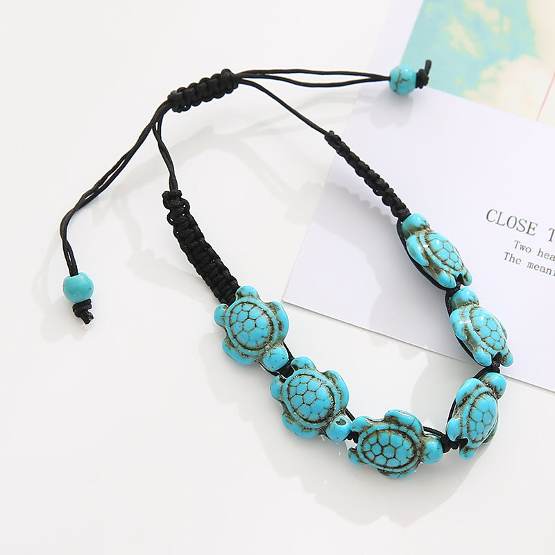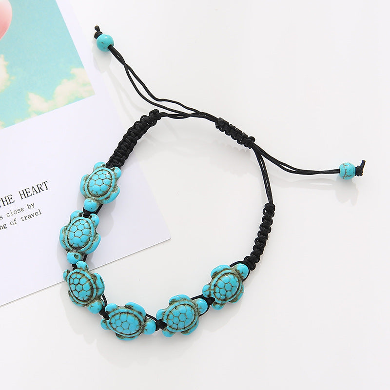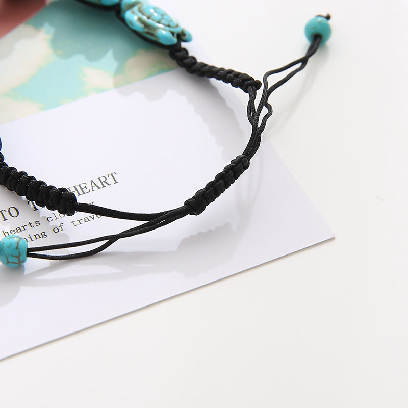Adorn your wrist with this charming turquoise turtle bracelet. Handcrafted with beads and braided design for a unique look.