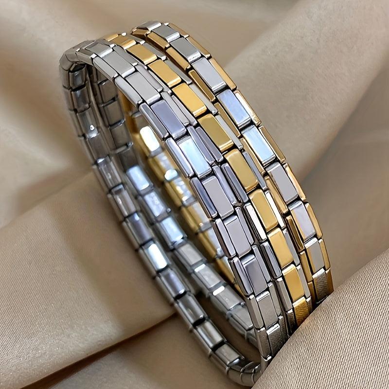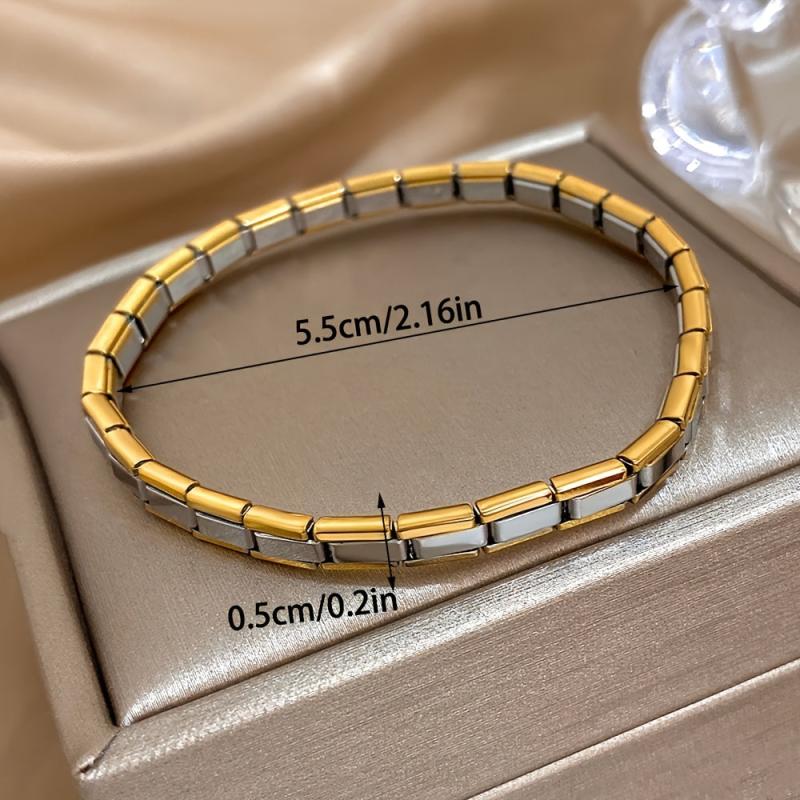 This elegant bracelet is perfect for daily wear or parties. Crafted from ultra fine stainless steel with a stylish golden tone finish, it adds a touch of sophistication to any outfit. Makes a great gift for Mother's Day.
