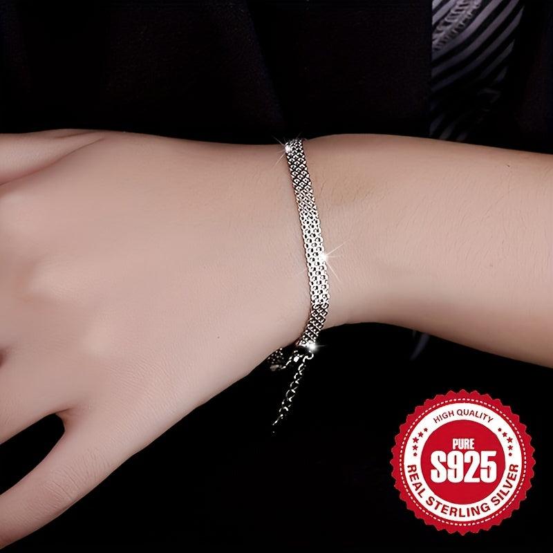 Fashionable and versatile unisex bracelet suitable for daily wear and various occasions. Made of S925 sterling silver, this tank mesh bracelet adds a stylish touch to your outfit.