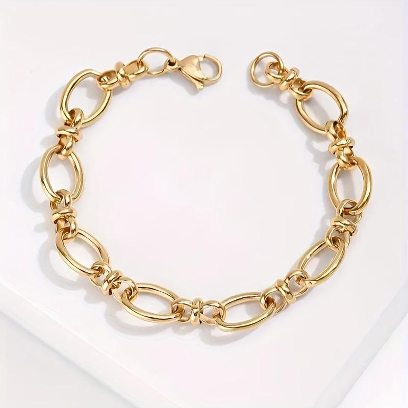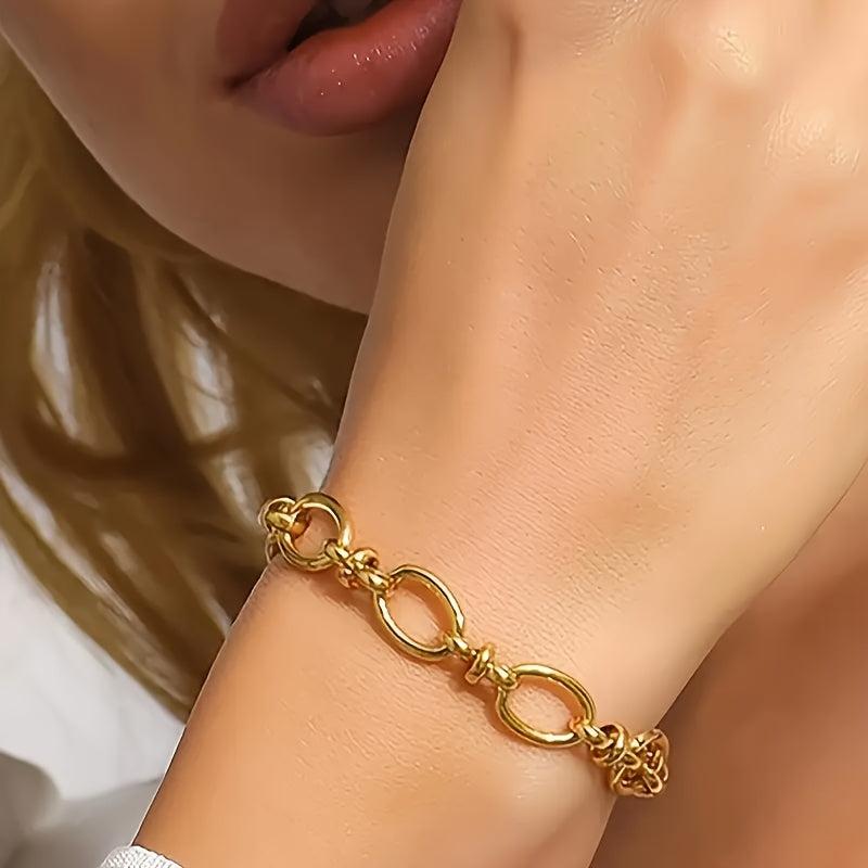 This unisex bracelet features an interconnected O-shaped chain design with intricate detailing. It is perfect for daily wear, parties, holidays, and makes a great gift for women, especially mothers.