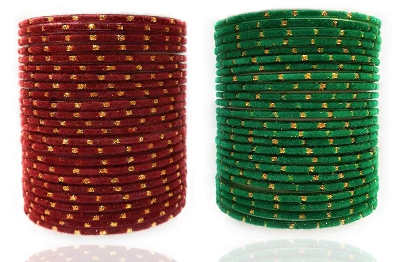 Velvet Fabric & Glass Bangle Set (Maroon & Green) (Pack of 48)