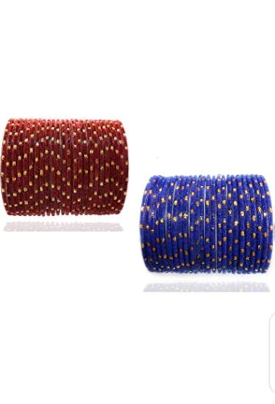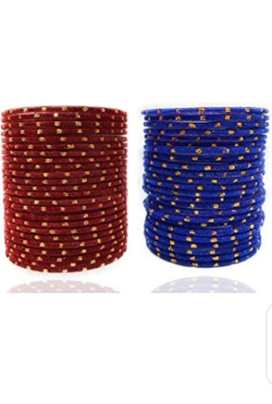 Elegant bangle set featuring velvet fabric and glass beads. Set of 48 assorted bangles for a stylish collection.