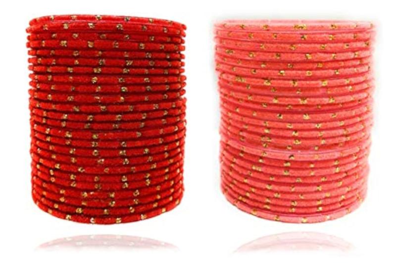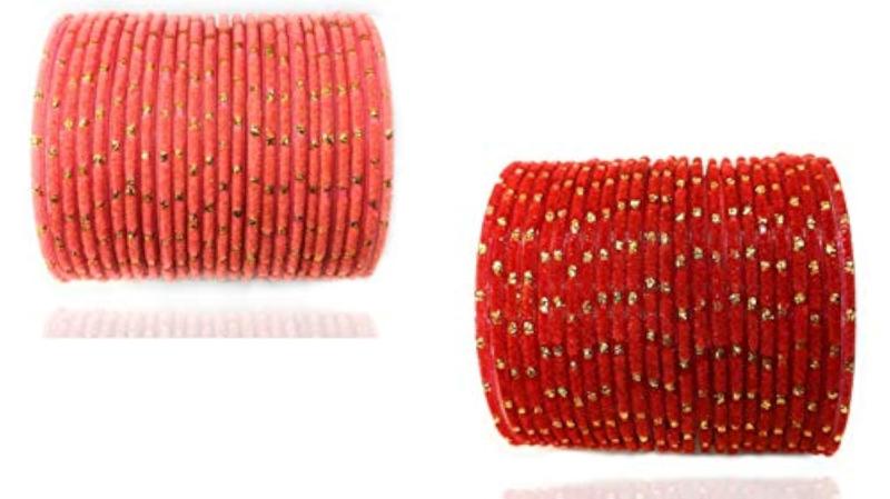Elegant set of bangles made from velvet fabric and glass, perfect for women.