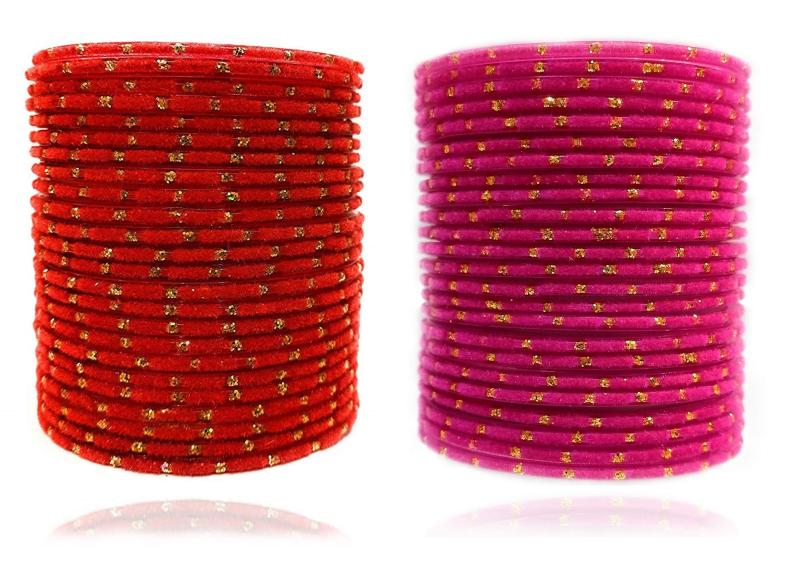 Elegant velvet and glass bangle set for women, includes 48 pieces. Perfect for adding a touch of glamour to any outfit.