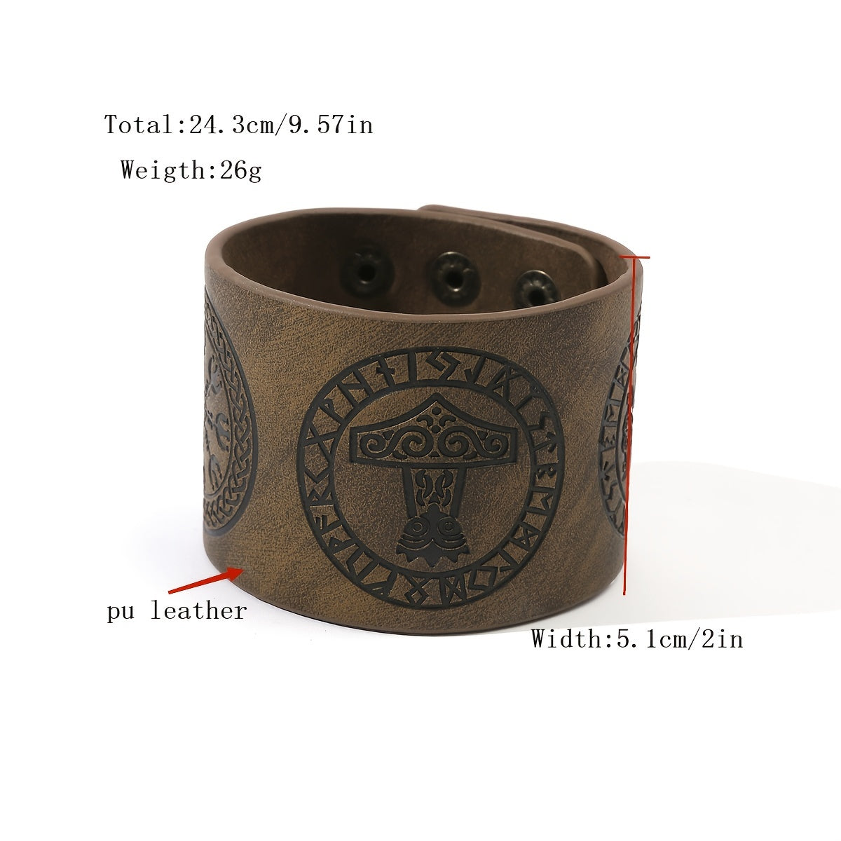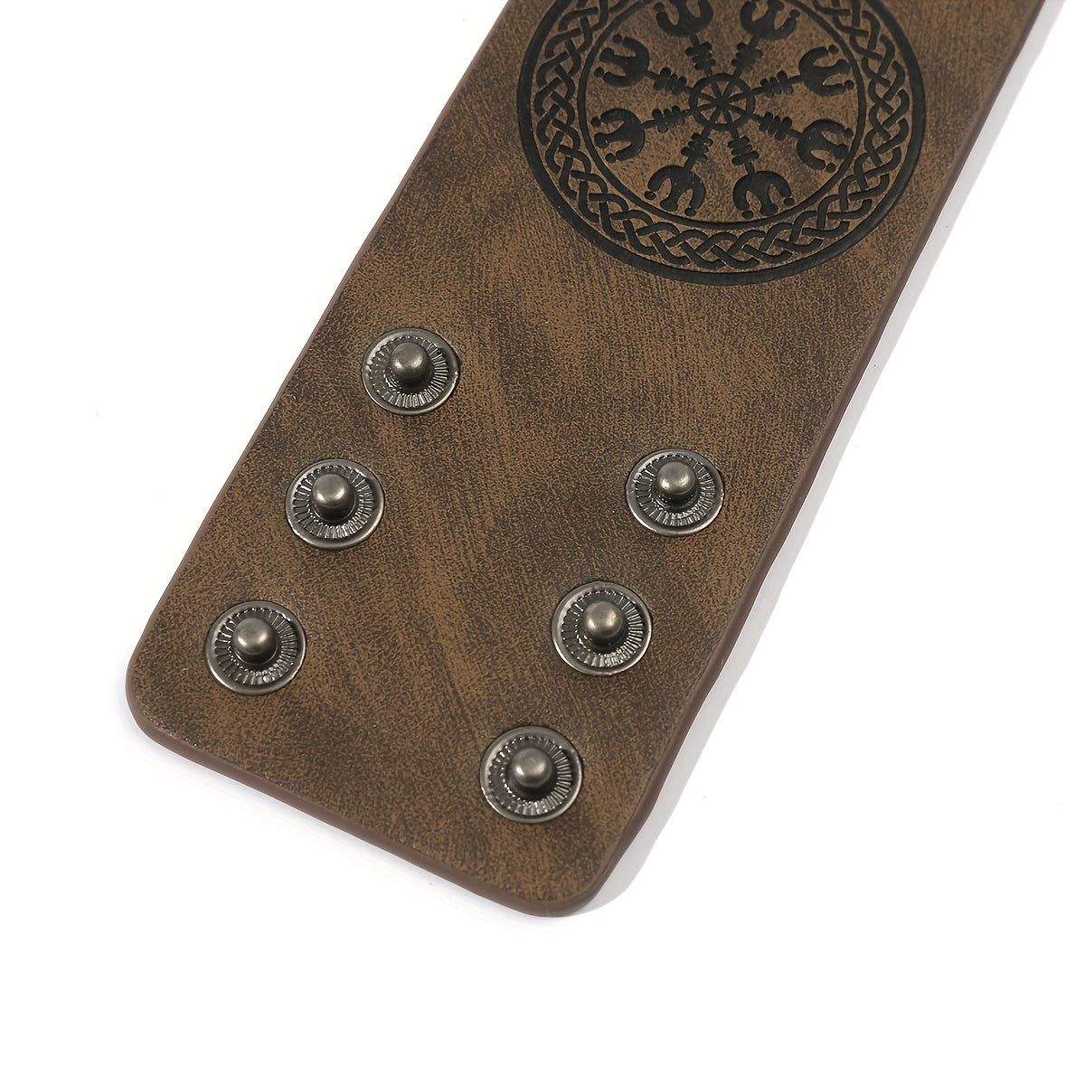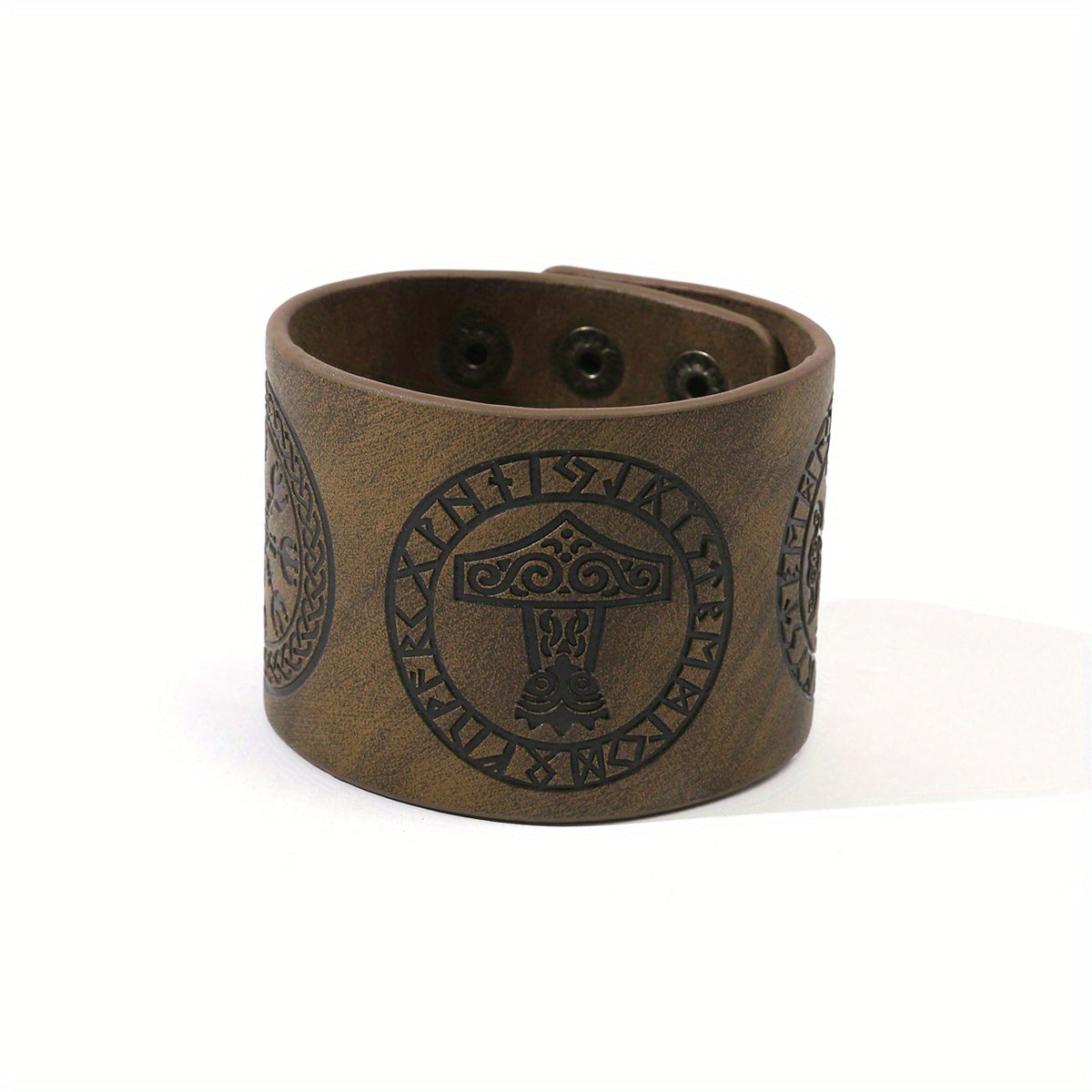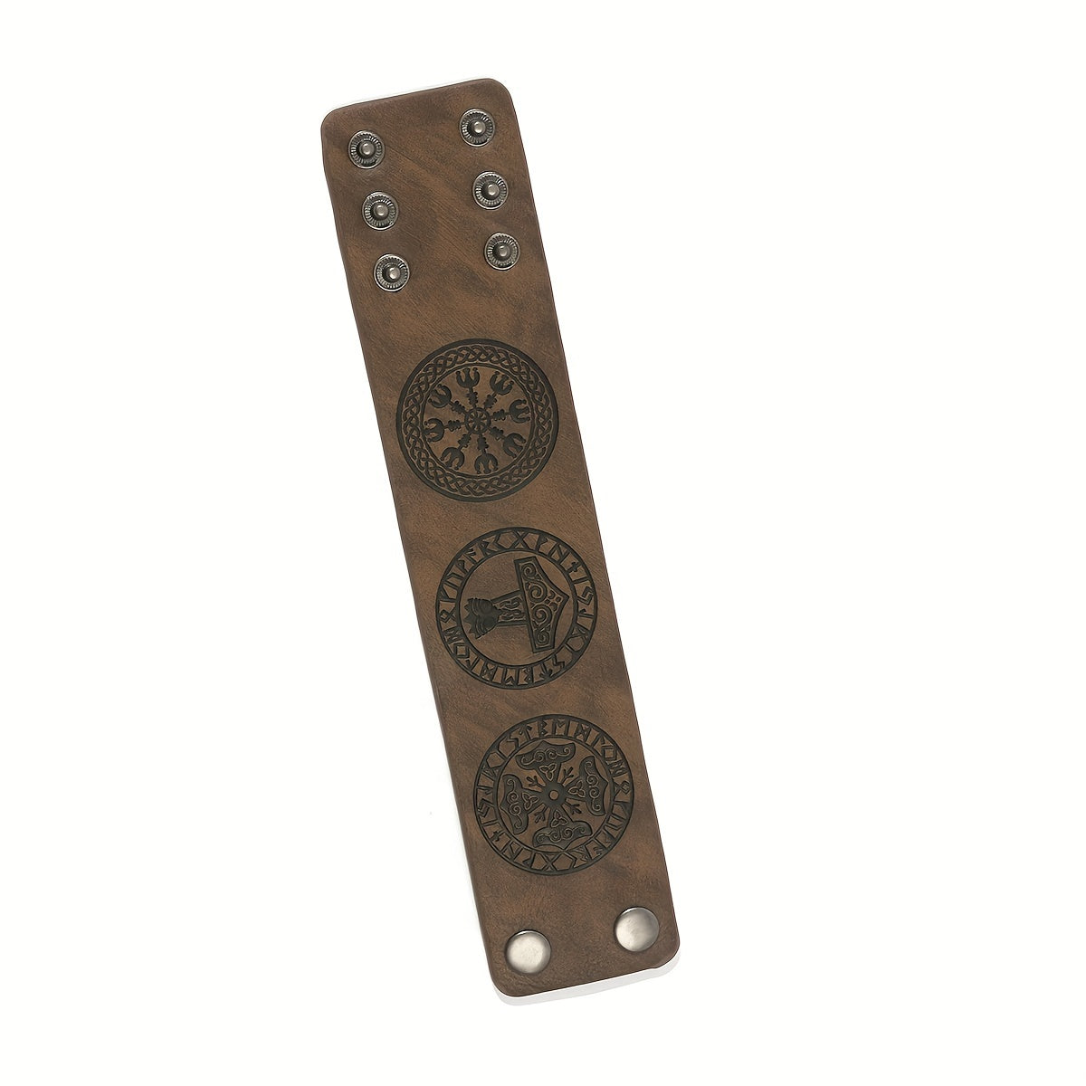 Explore the Viking spirit with this stylish leather bangle featuring a Viking compass design. Adjustable to fit any wrist size.