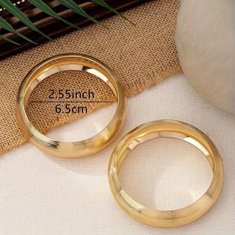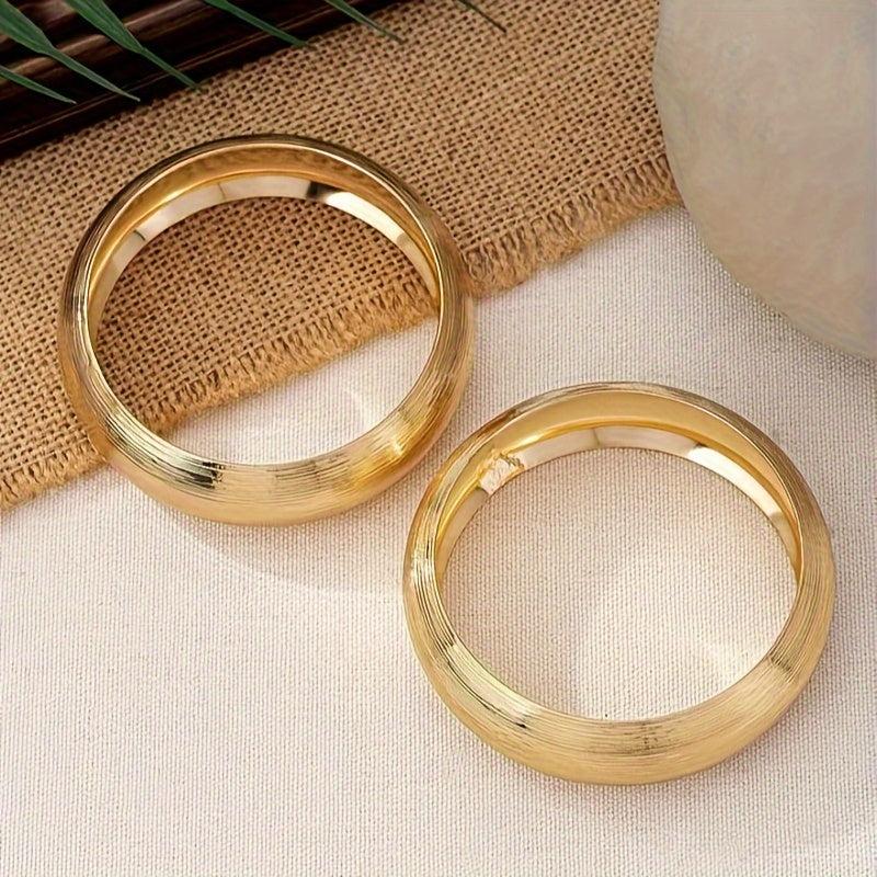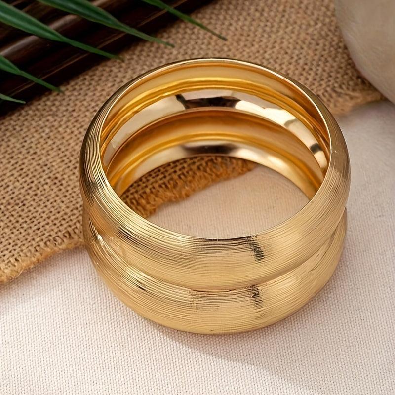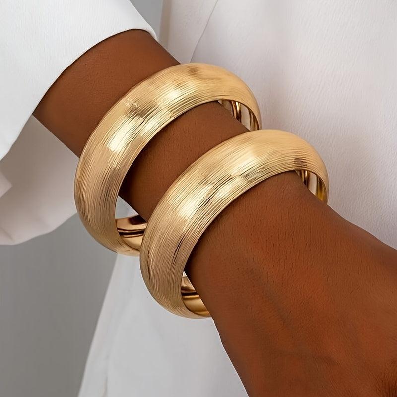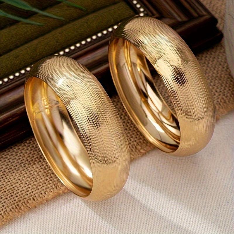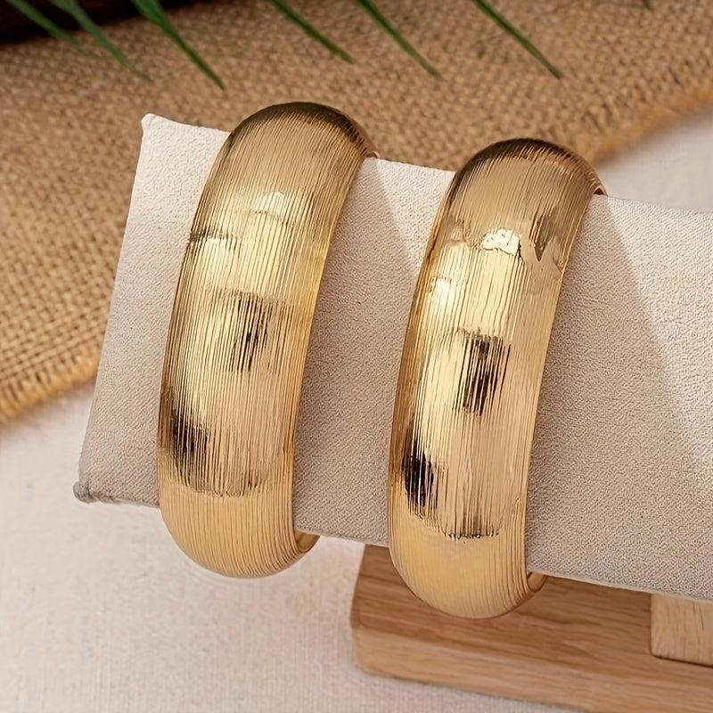 Elegant 2-piece set of women's bracelets with a vintage style look. Made of brushed iron with a 14K golden plating. Versatile design suitable for daily wear or gifting.