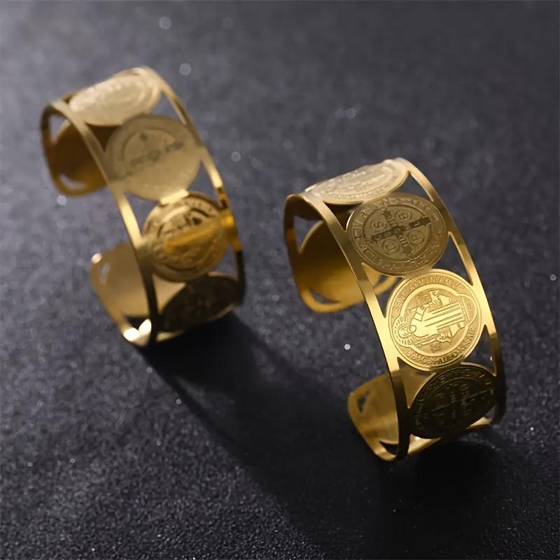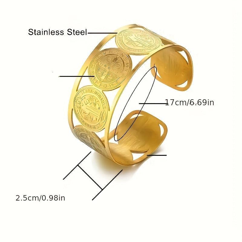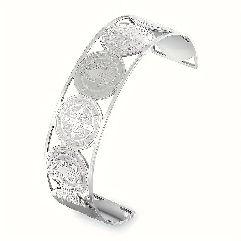 This stainless steel bracelet features a Father Open Titanium design with a religious motif. Perfect as a Christmas gift for both ladies and men.