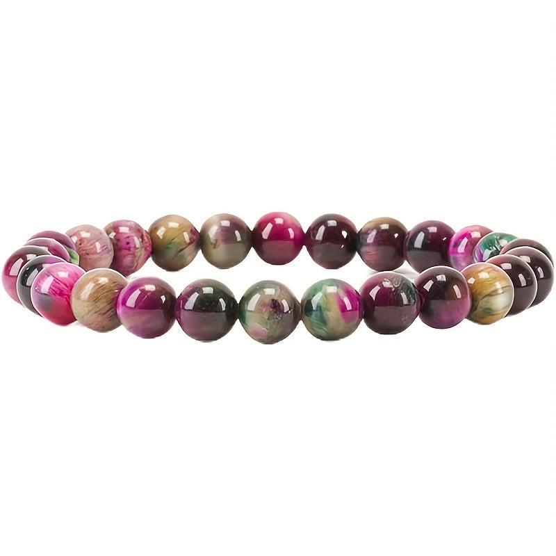 Discover this unisex beaded bracelet featuring synthetic December birthstone cat's eye and tiger's eye gemstones. It boasts a timeless design, perfect for daily wear with no plating.