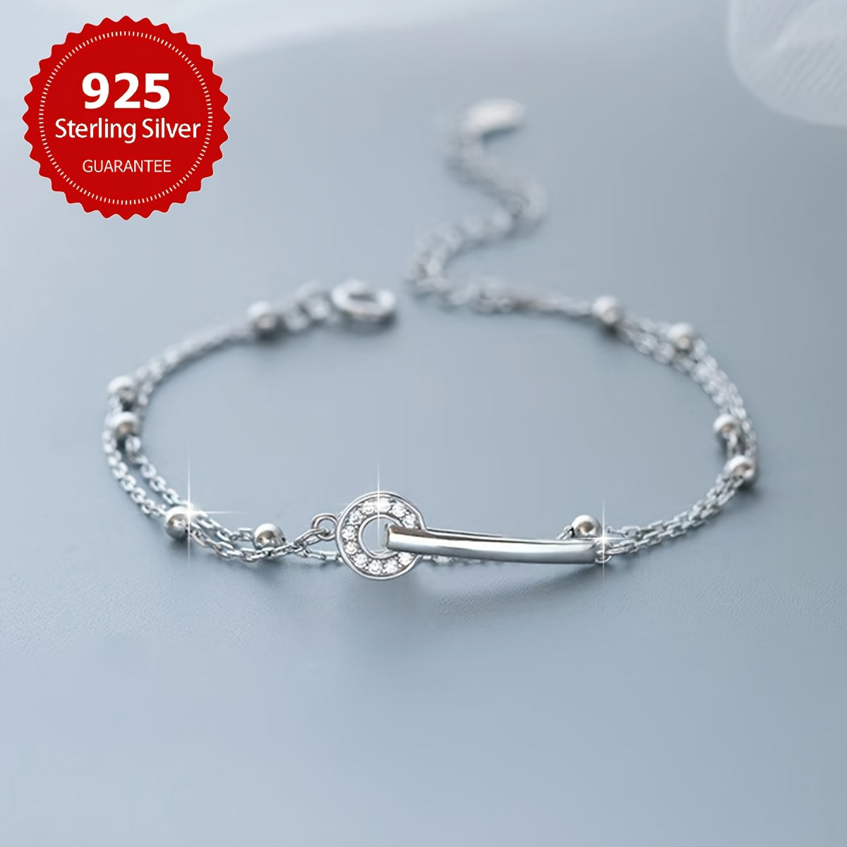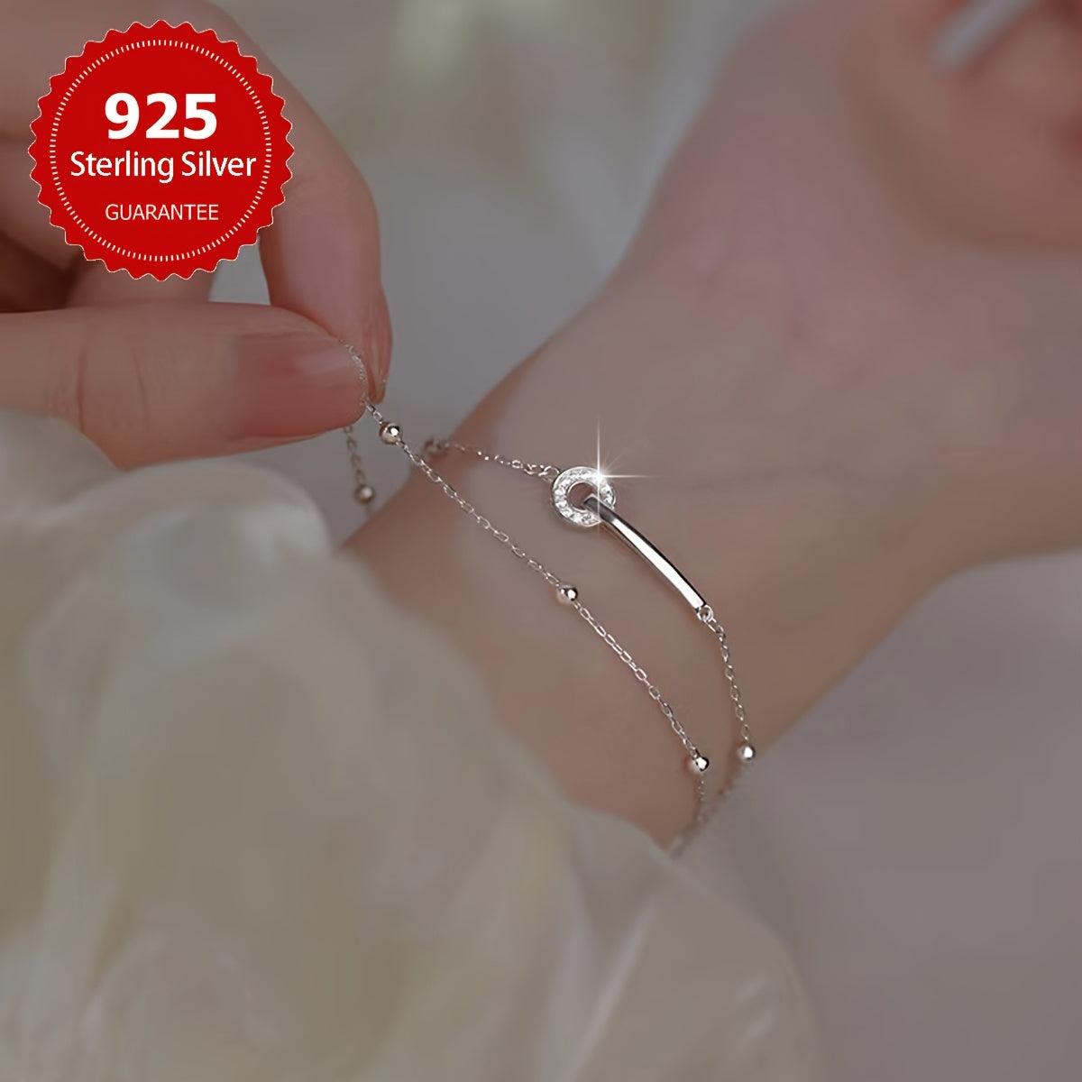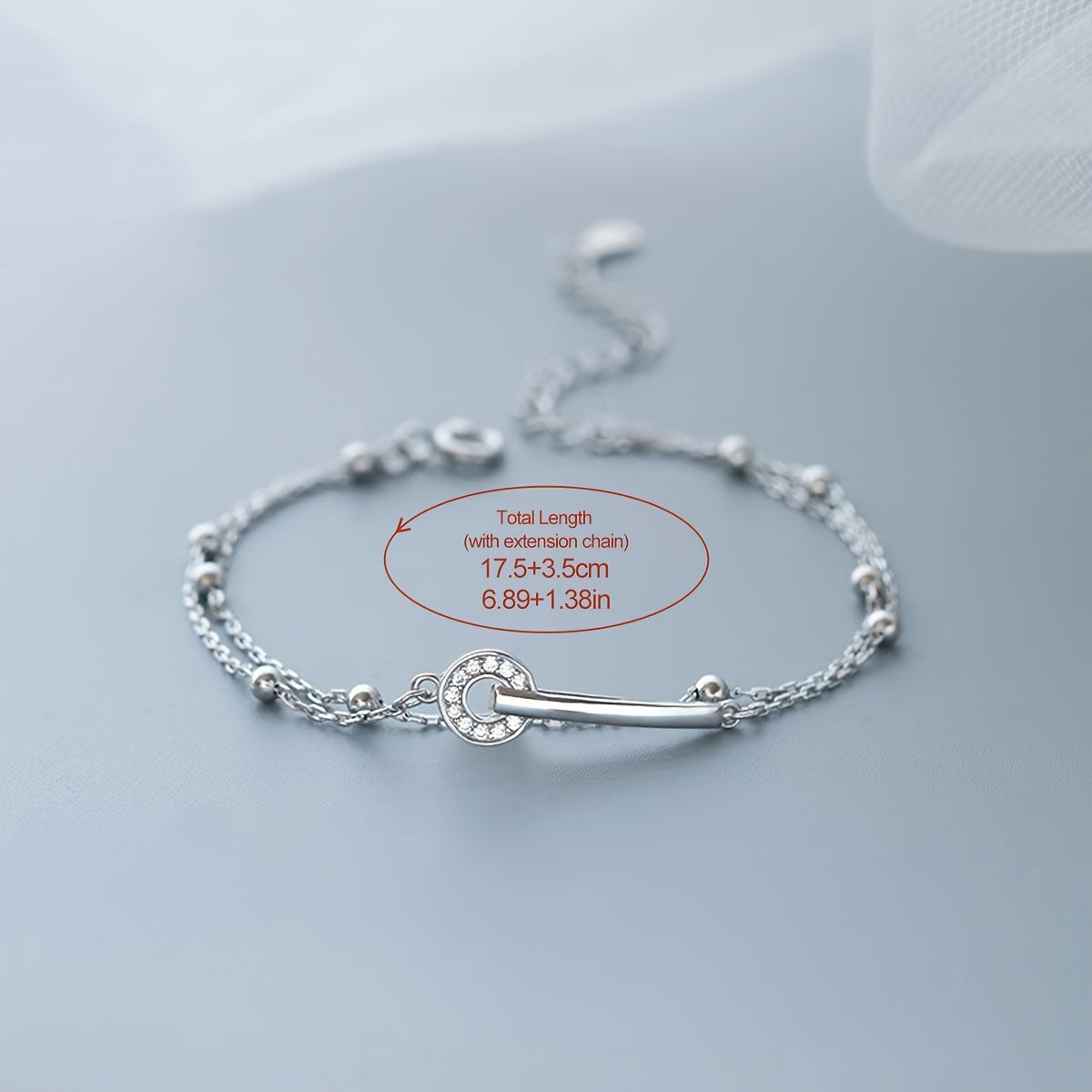 Elegant vintage-inspired bracelet featuring a central zirconia stone on a double-layer beaded design. Made of high-quality S925 sterling silver, perfect for daily wear or as a thoughtful gift.