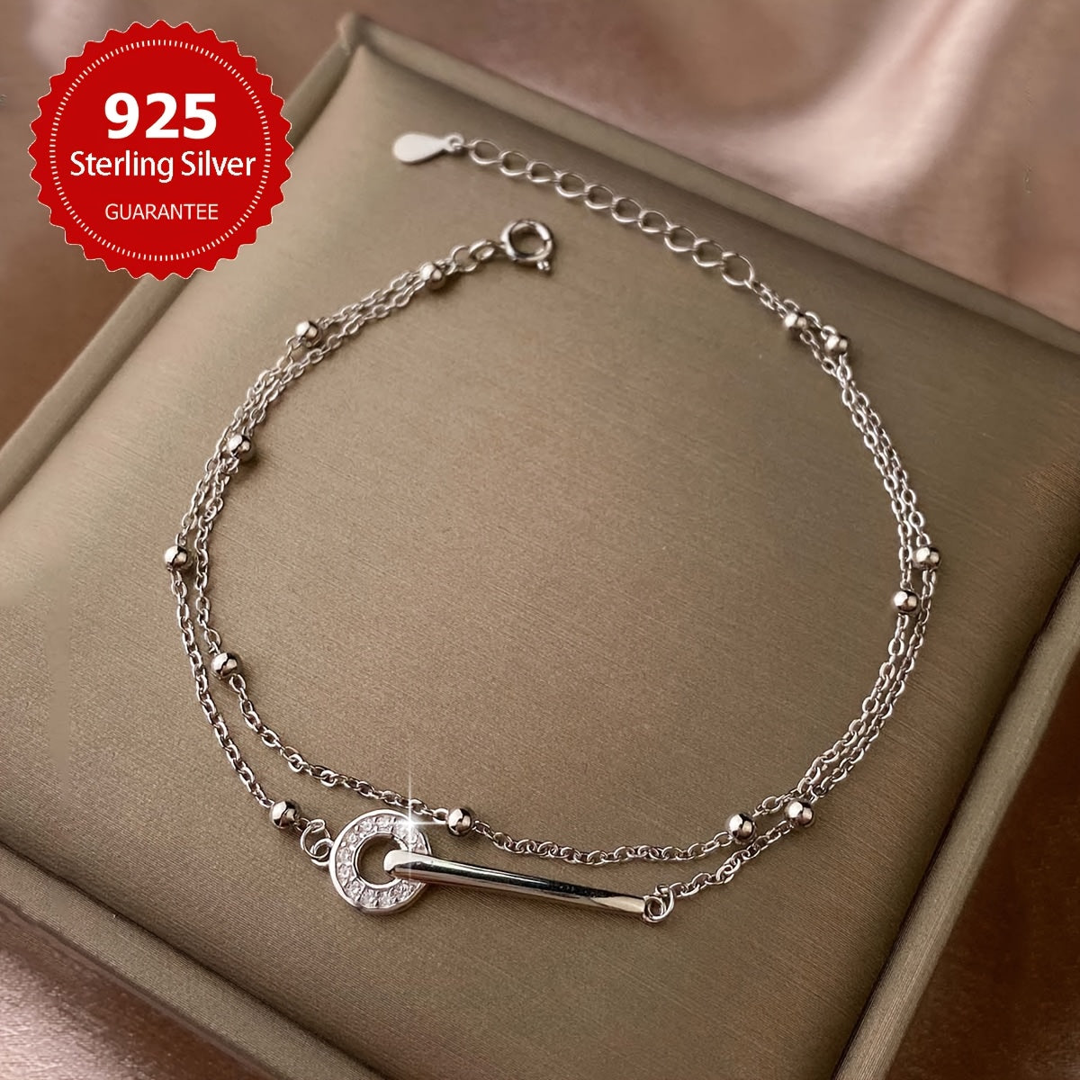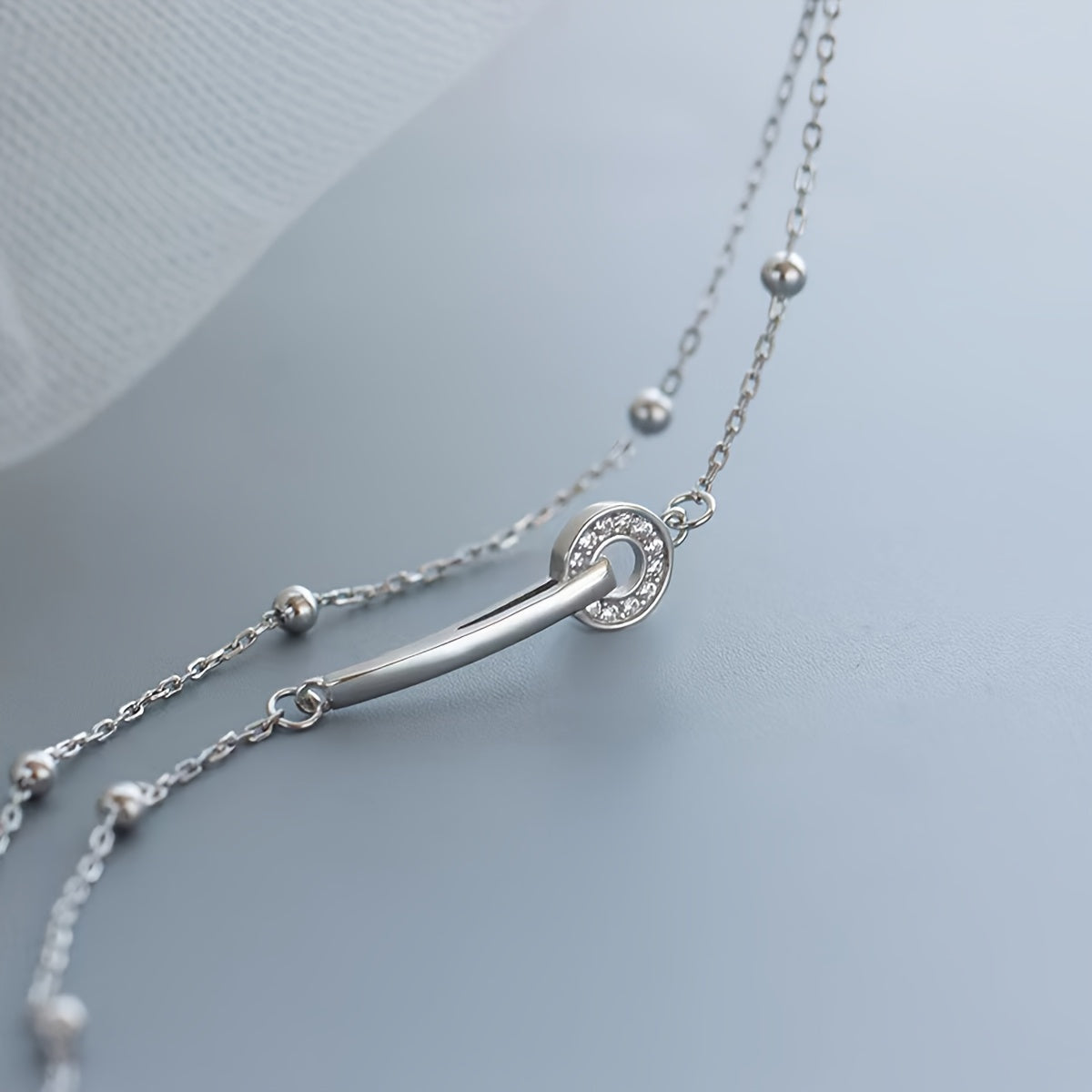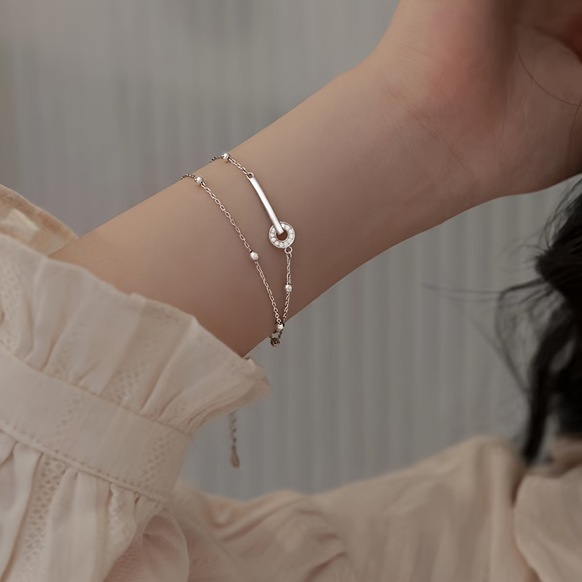 Elegant vintage-inspired bracelet featuring a central zirconia stone on a double-layer beaded design. Made of high-quality S925 sterling silver, perfect for daily wear or as a thoughtful gift.