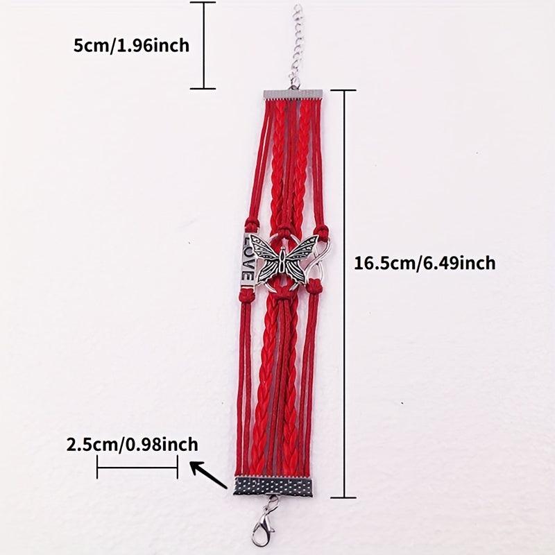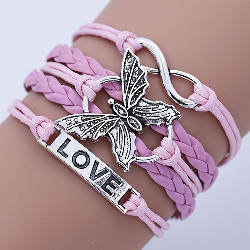 This multilayer leather bracelet features the letters 'Love' and a butterfly design, suitable for both men and women.