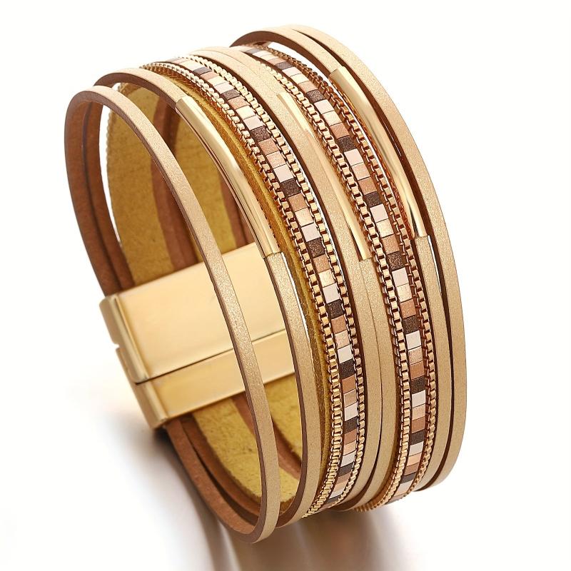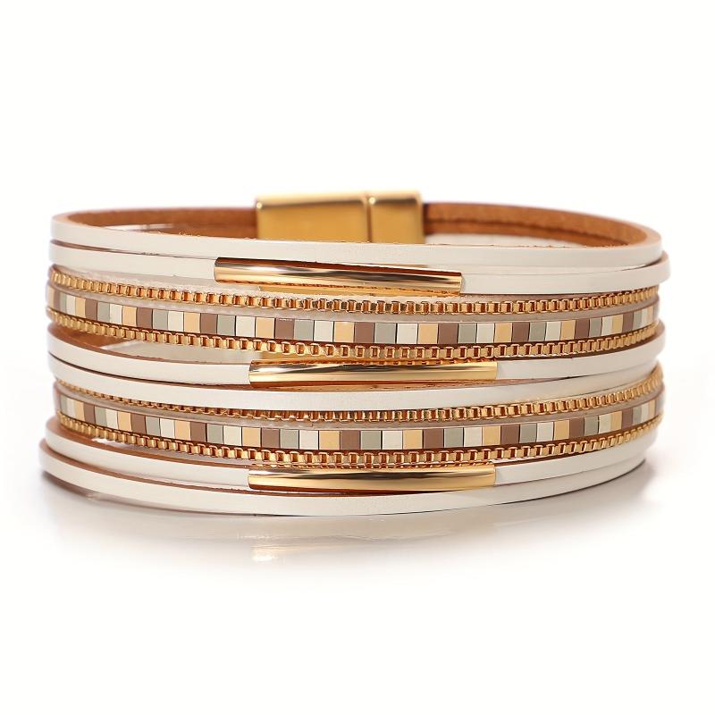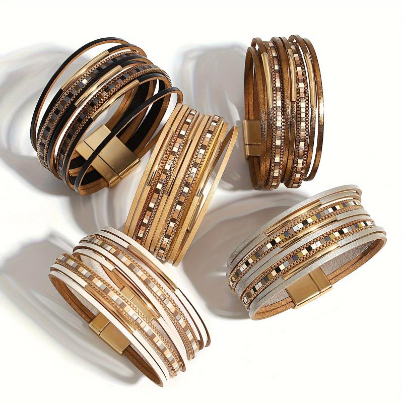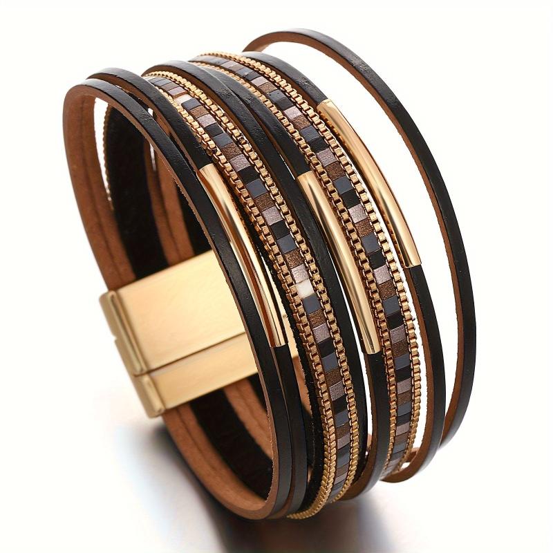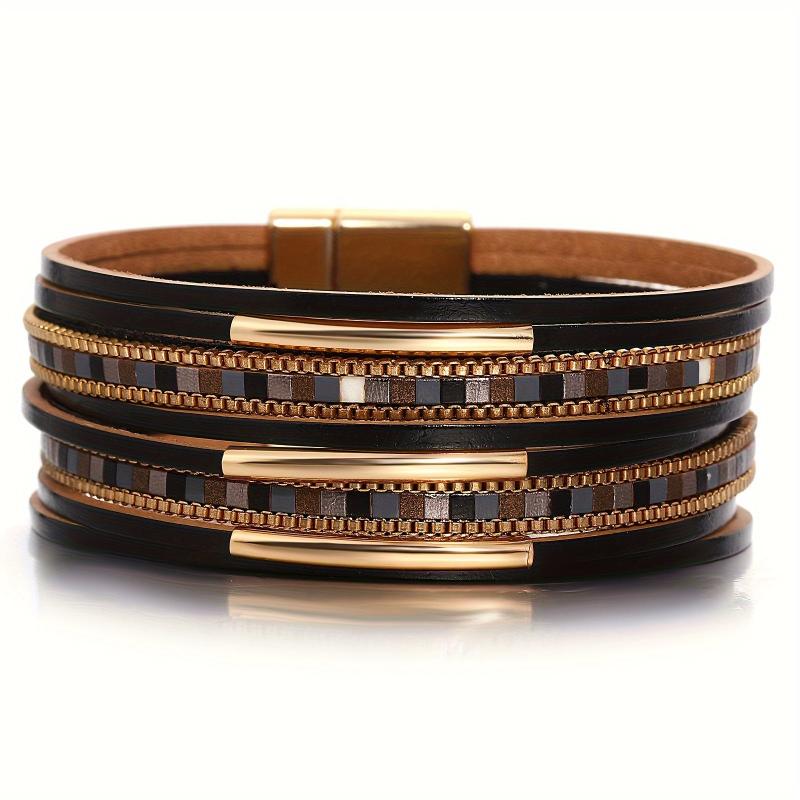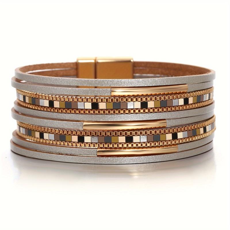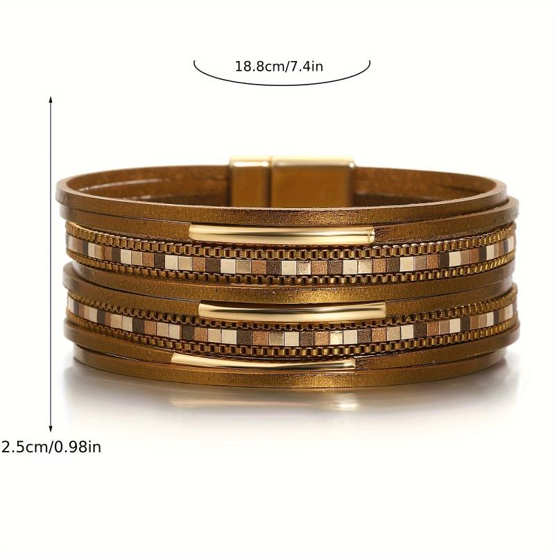 Add a touch of vintage charm with this classic square link round tube layered faux leather bracelet. It's an ideal jewelry gift accessory.