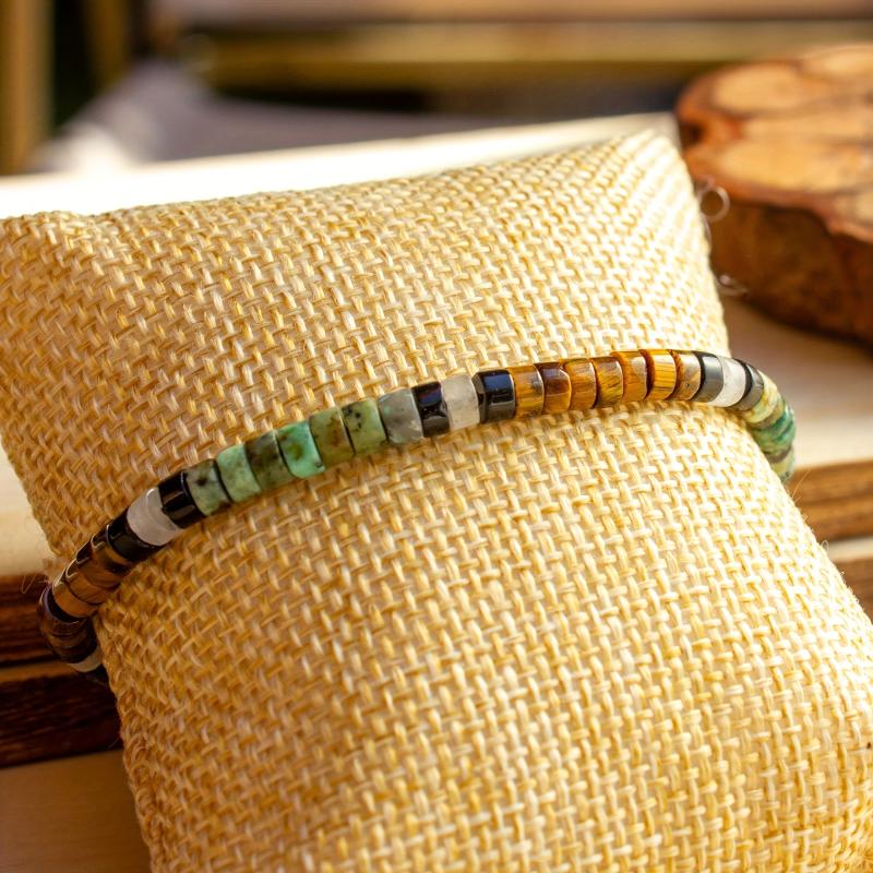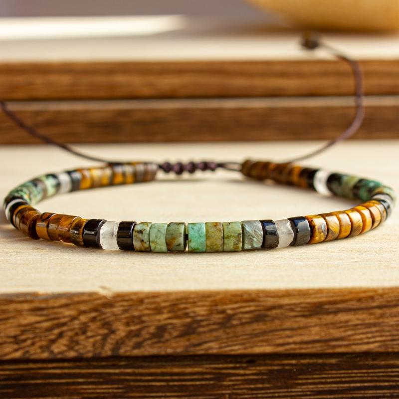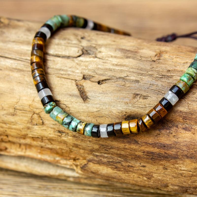 This bracelet combines the confidence-boosting power of tiger's eye with the calming energy of African turquoise, making it a perfect accessory for daily wear. Surprise the man in your life with a gift that exudes strength and style.