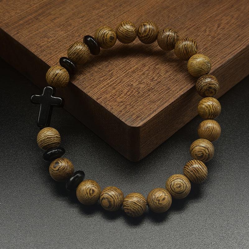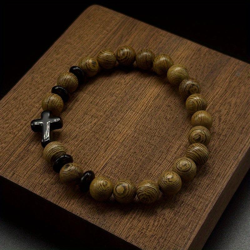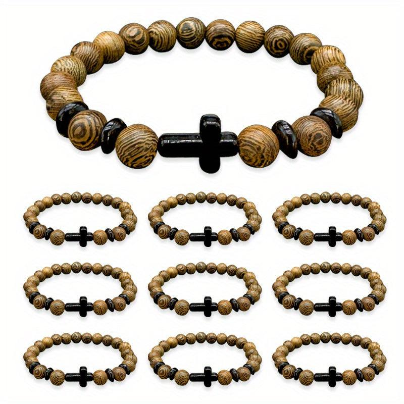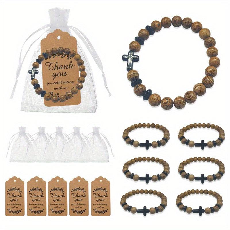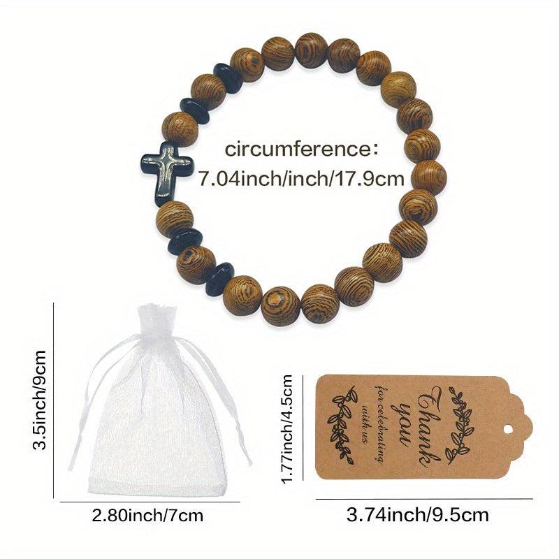 This wooden rosary bracelet features a cross and comes with a thank you tag and organza bag. It makes a perfect gift for daily wear or special occasions.