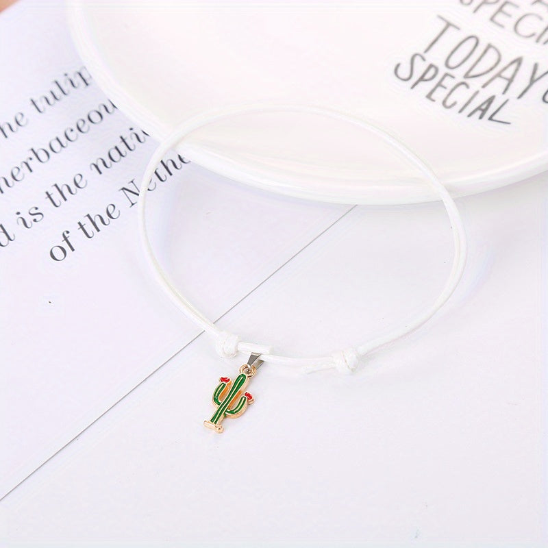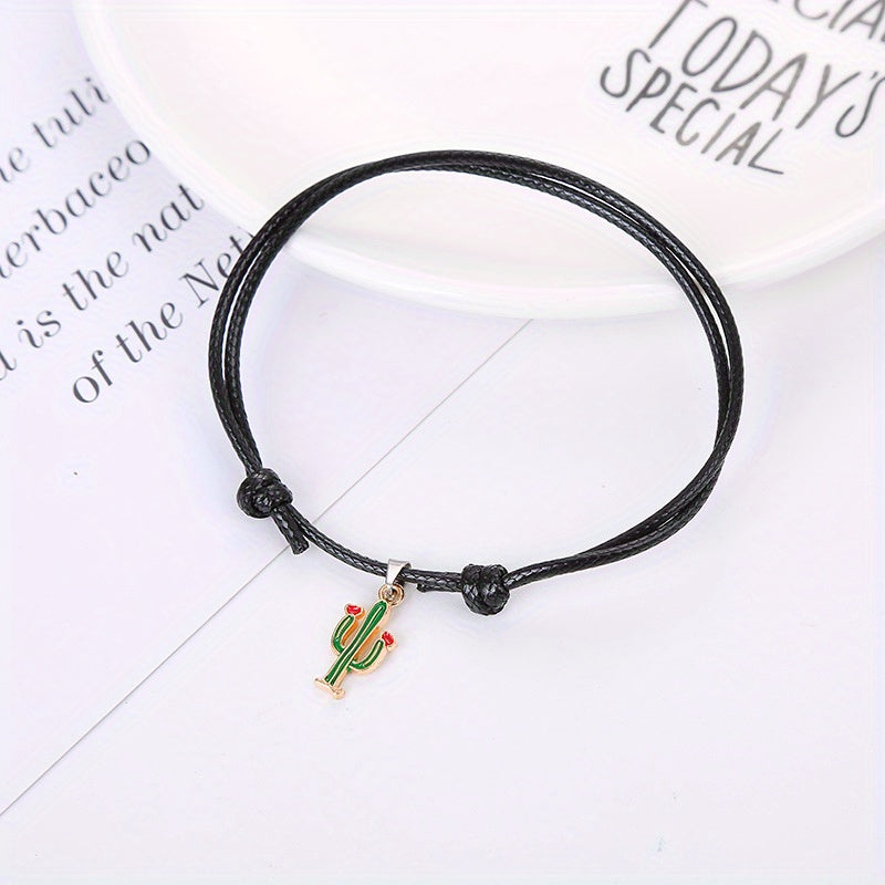 Stay stylish with this waterproof anklet featuring a cactus shape pendant. The wax thread adds a unique touch to your look.